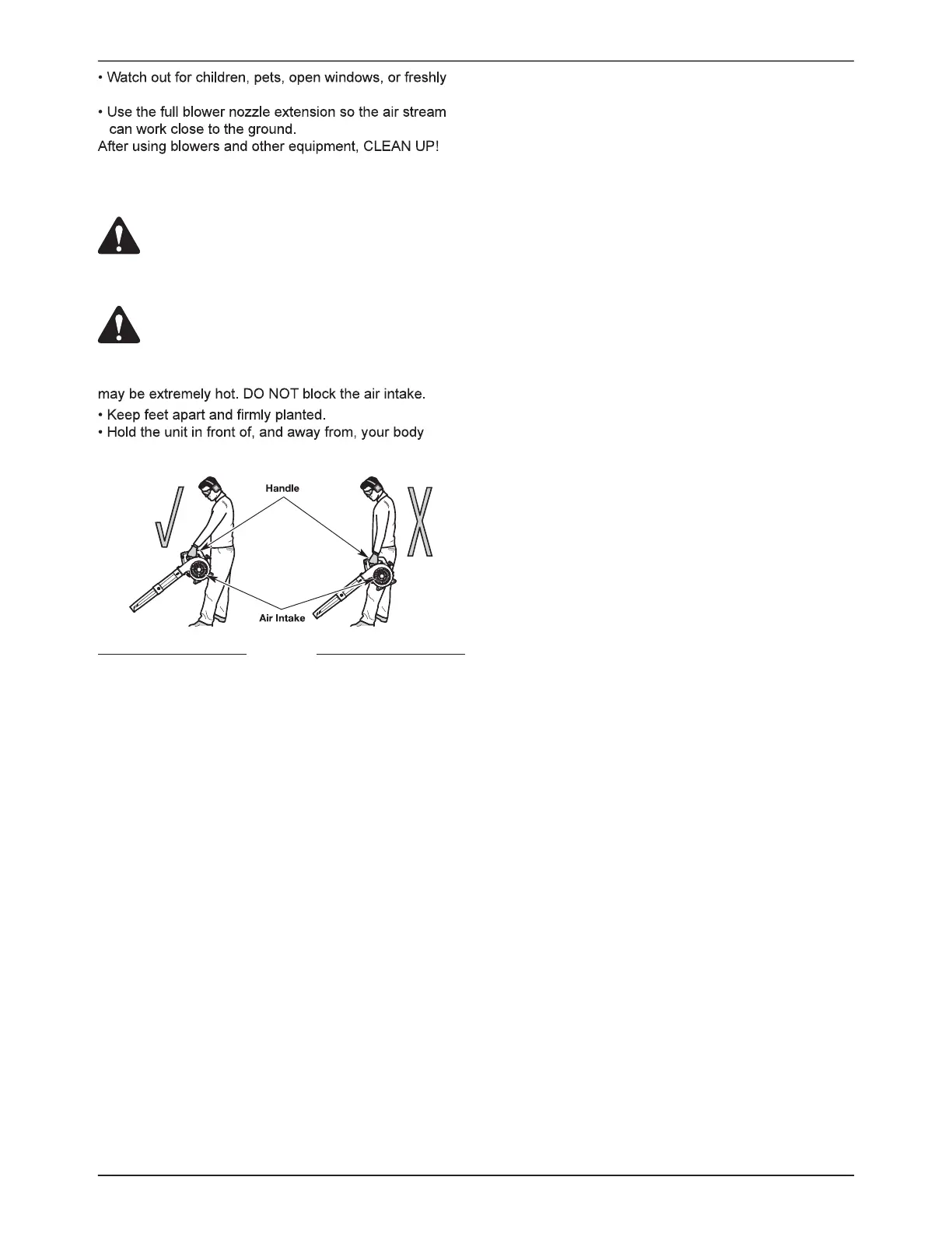 DO NOT hold the unit at your side (Fig. 12) The engine
