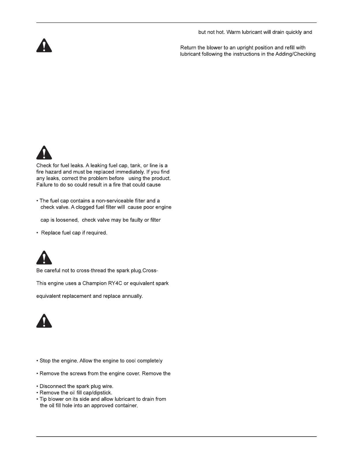 Do not change engine lubricant while it is hot. Accidental