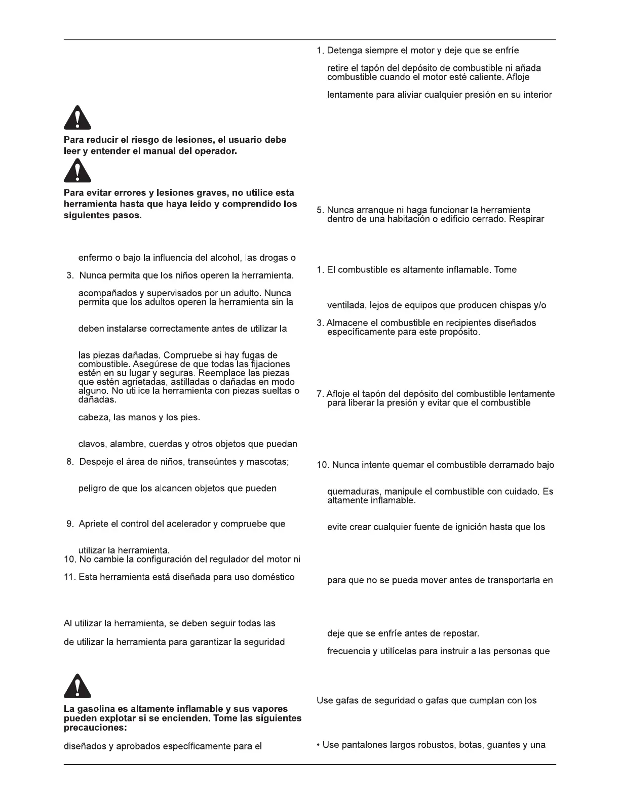12. Si se derrama combustible, no intente arrancar el