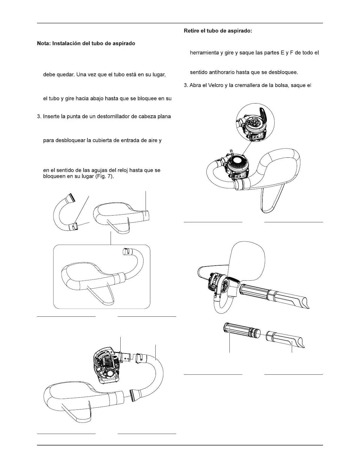 4. Monte el tubo de aspirado inferior (E) en el tubo de