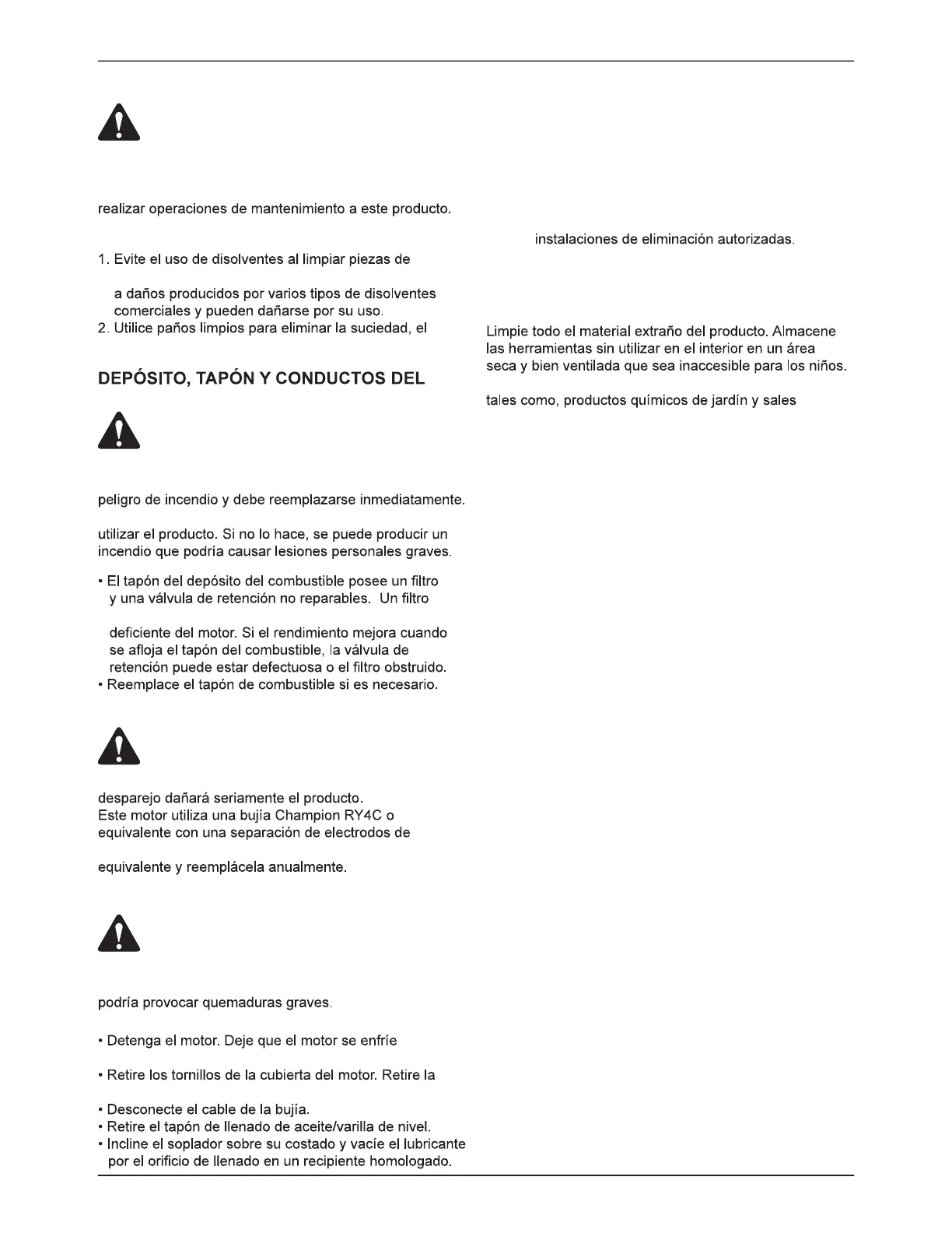 No cambie el lubricante del motor mientras esté caliente.