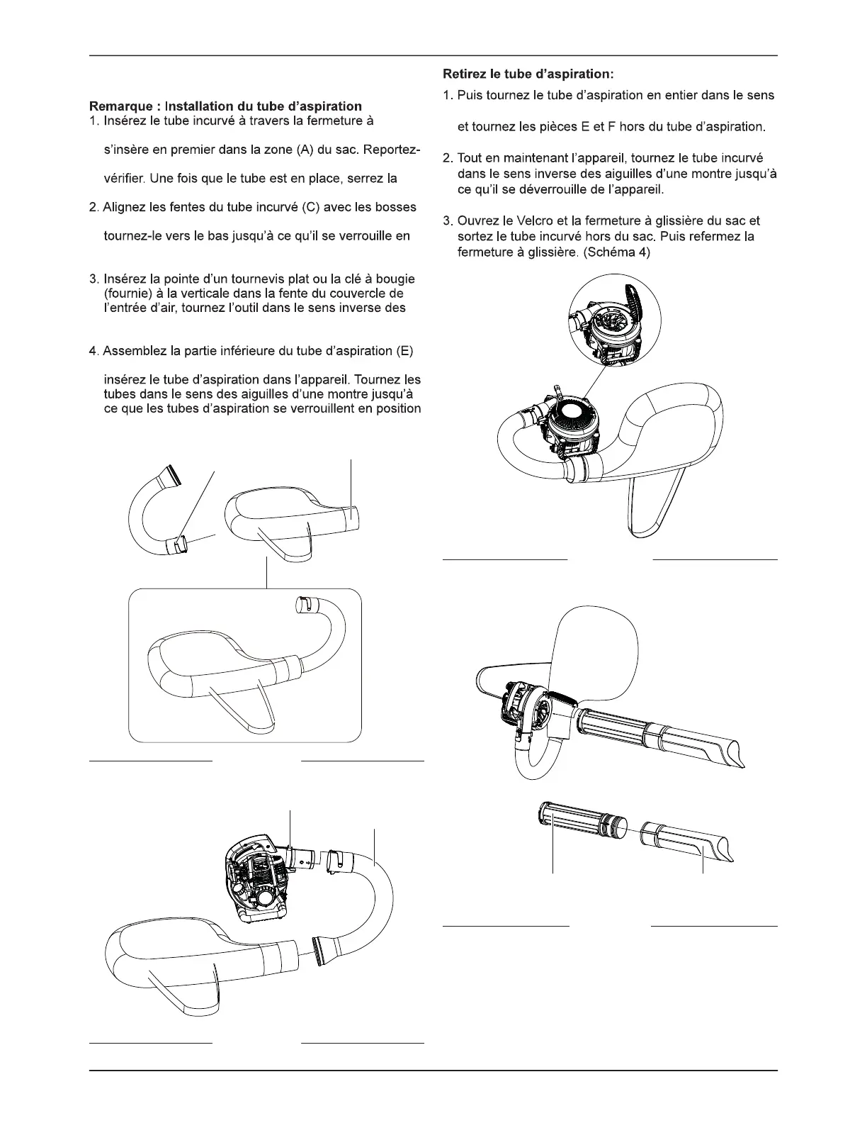 de l’embout de sortie (D). Faites glisser le tube et