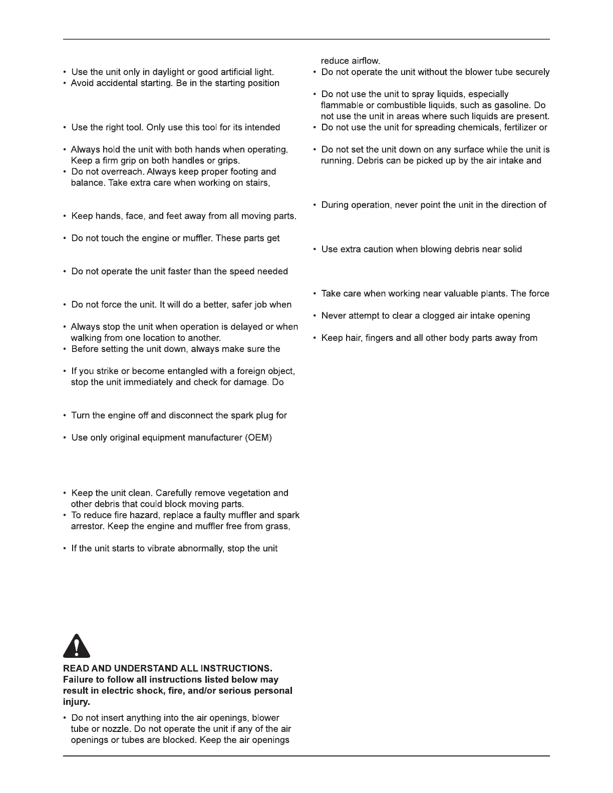 operate the unit while on a ladder or a roof.