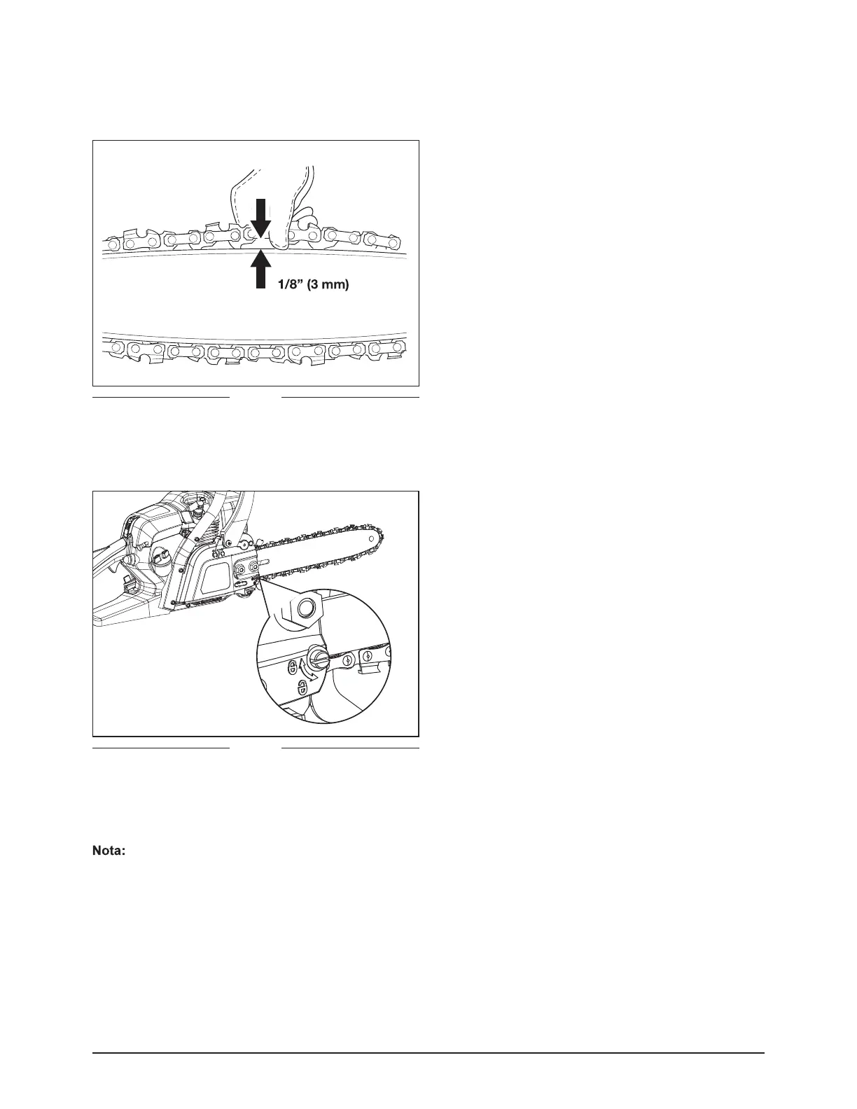 1. Verifique la tensión de la cadena de aserrado jalán-