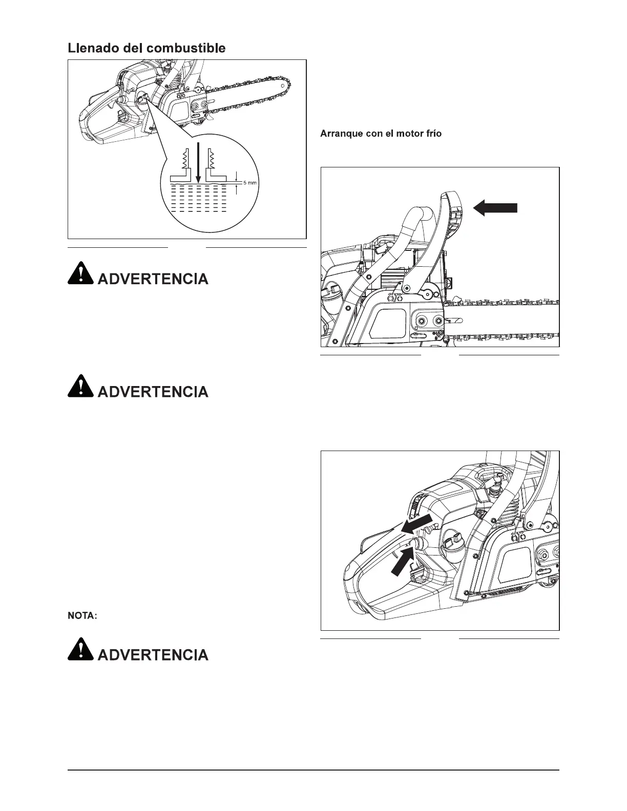 tos antes de añadirle combustible. Vuelva a colocar