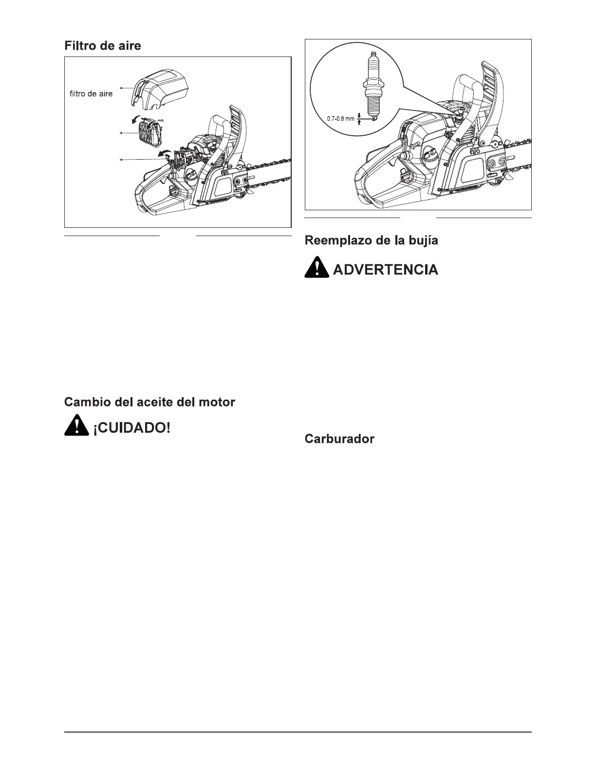 No ajuste el carburador. Si tiene problemas con el car-