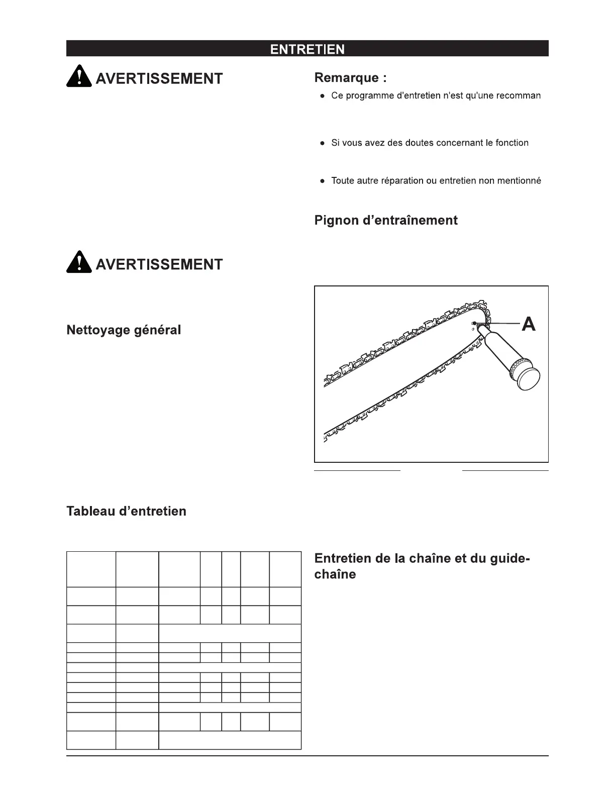 Afin de minimiser l'usure du guide-chaîne, un entretien