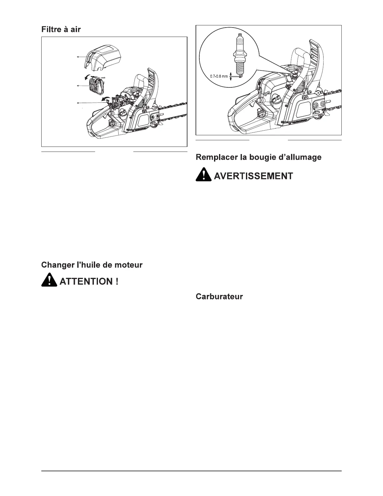 problèmes avec le carburateur, veuillez contacter le