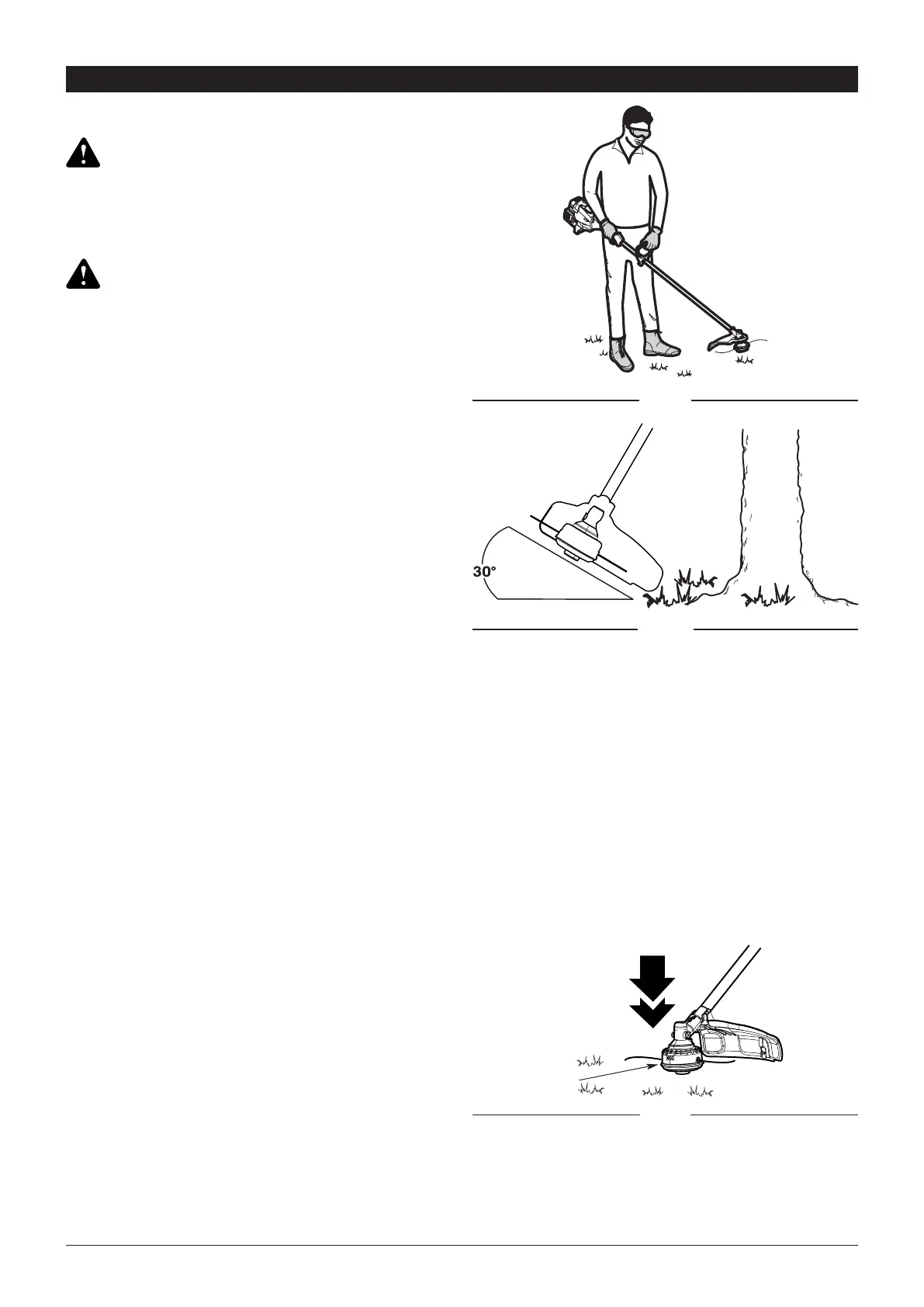 • Use the tip of line to trim grass; do not force string