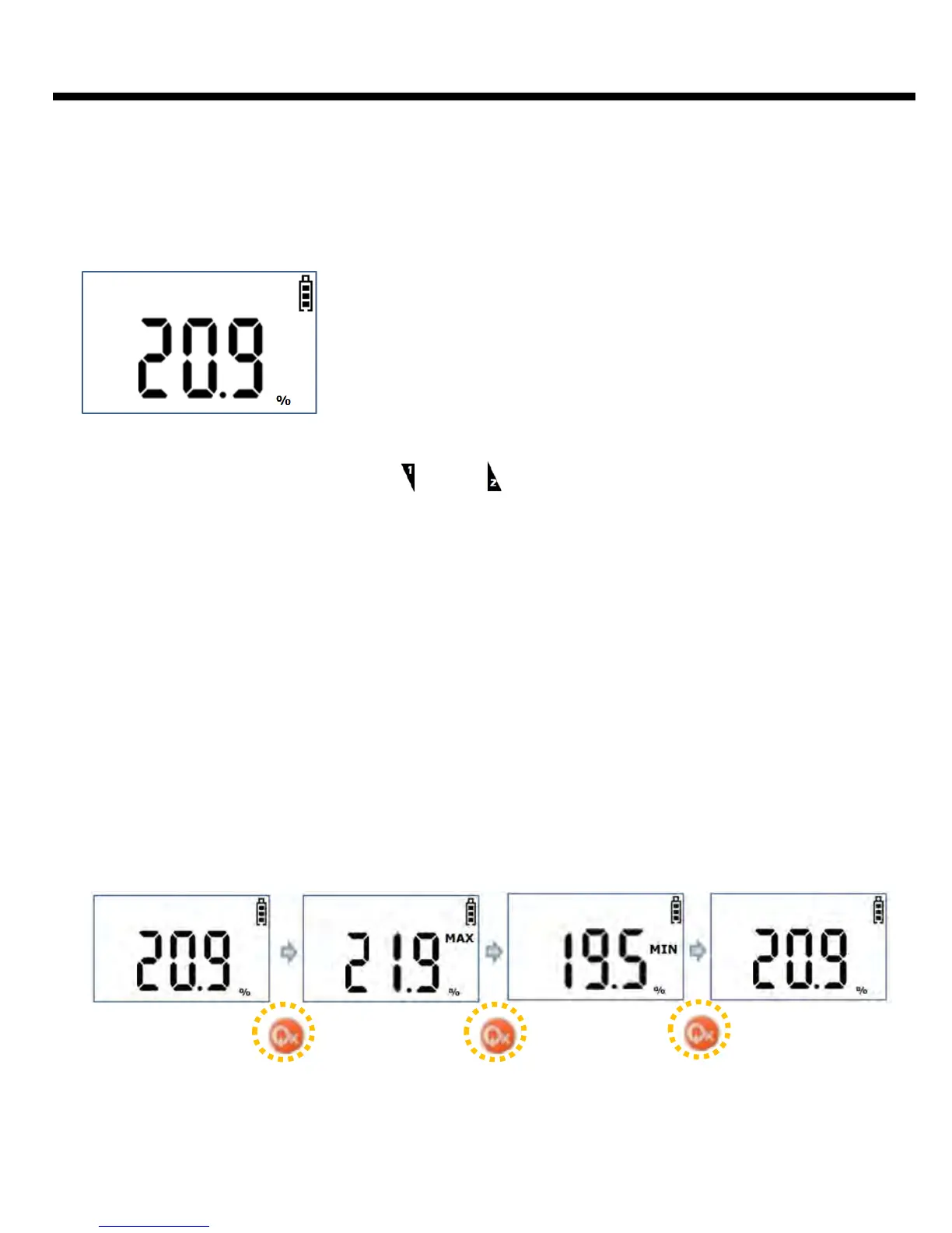 At Gas Measure Mode, in case of Oxygen, the measured maximum and minimum values are