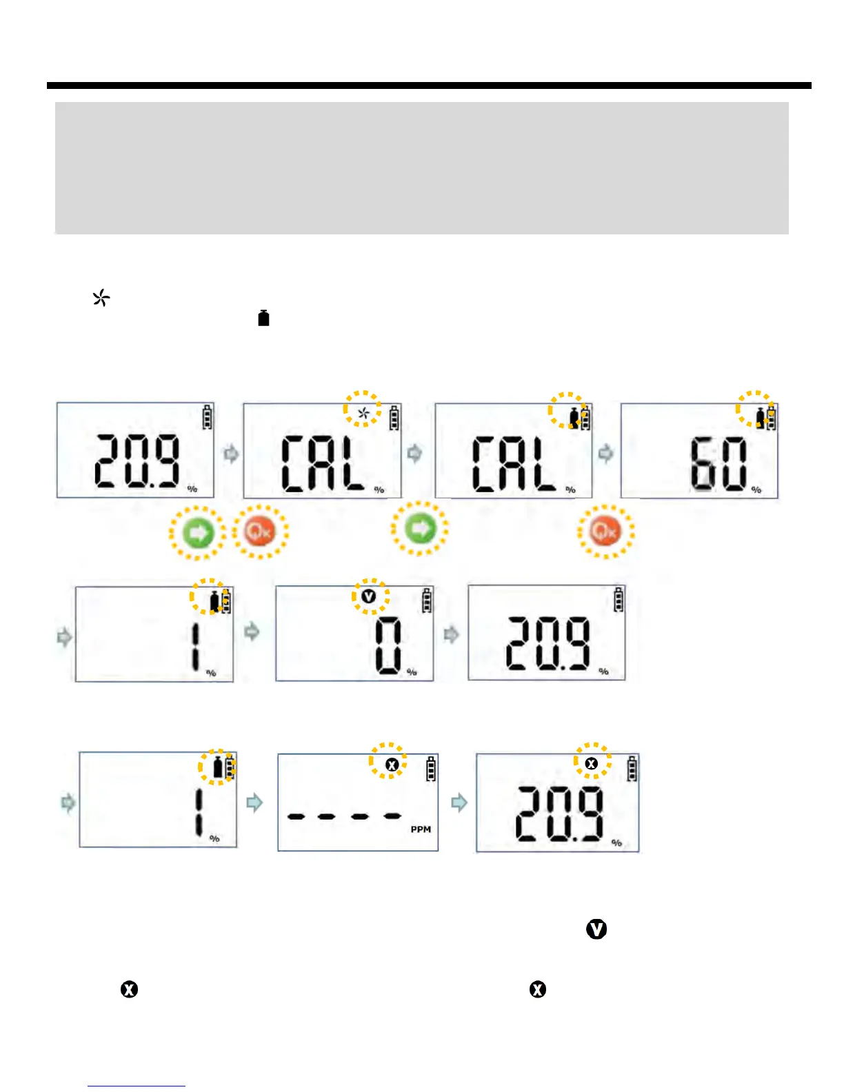 is disconnected. If the Calibration fails, program returns to Gas Measure Mode after blinking