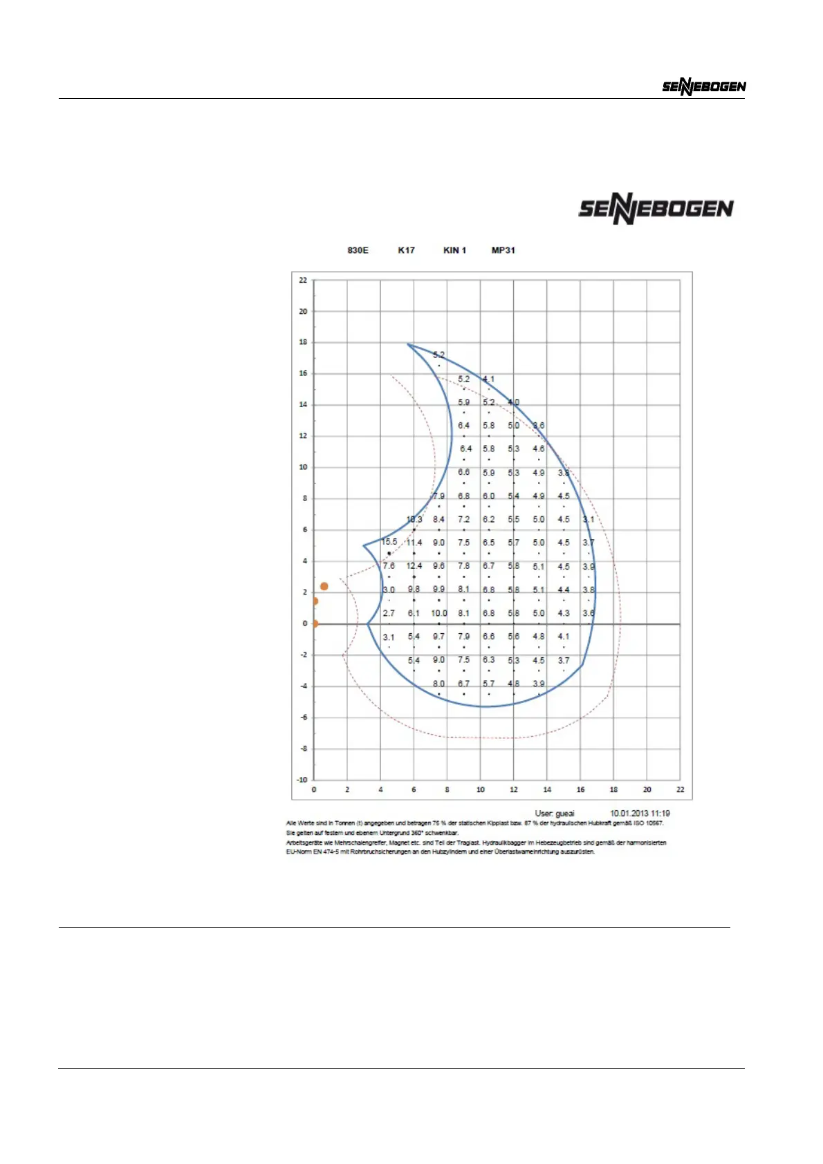 hydraulique conformément à ISO 10567. Elles sont applicables avec stabilisateur et sur un sol plan et résistant, pivotement sur 360°. Les valeurs entre