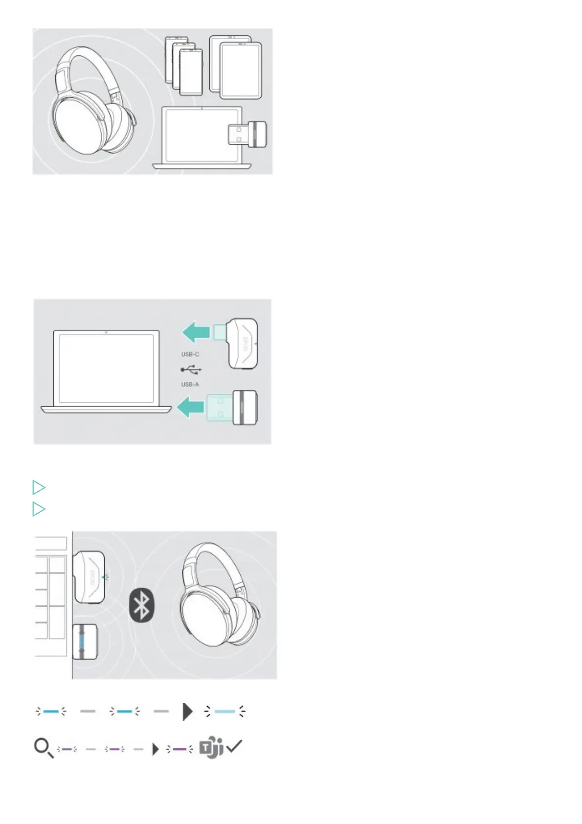 If Microsoft Teams is invoked: The dongle connects to Teams and lights up purple instead of blue.