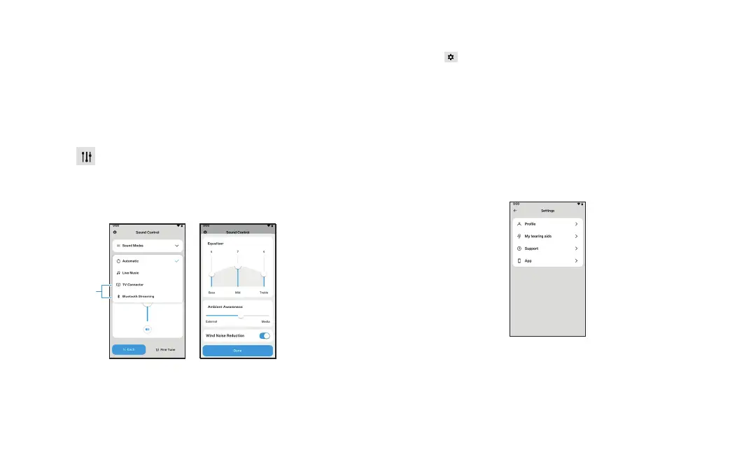 • Hearing aid settings including sound profile