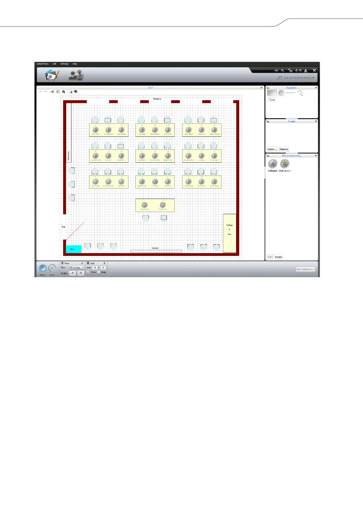 Example of a graphical representation of the conference room (for how to place graphic objects on the canvas, see