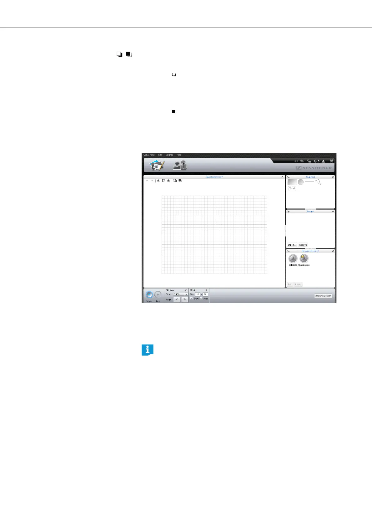 Enlarging the canvas When a new conference document opens in the Room View window, the canvas is