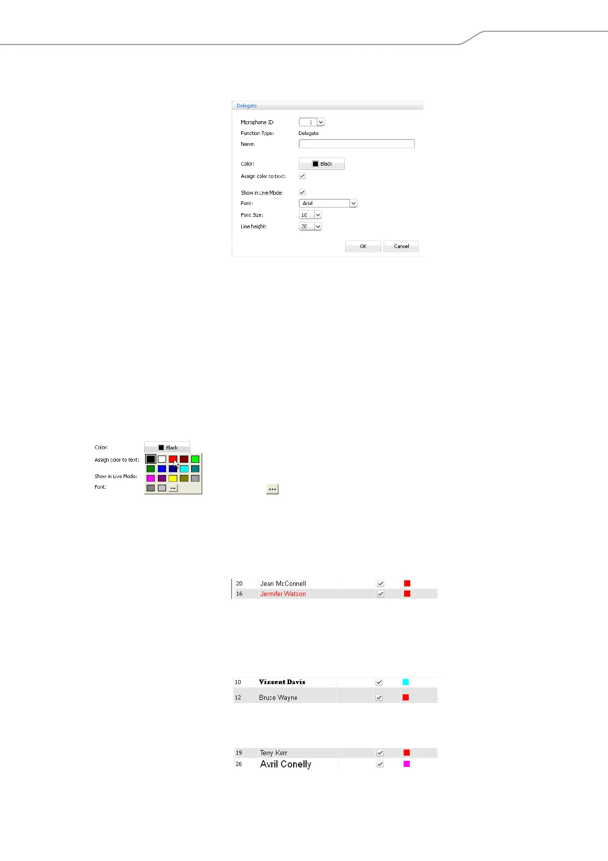 To assign a color to a delegate: