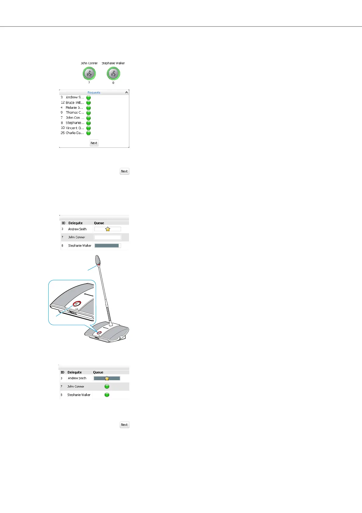 in the order of the request-to-speak list (in “Request” and “Direct Access” mode):