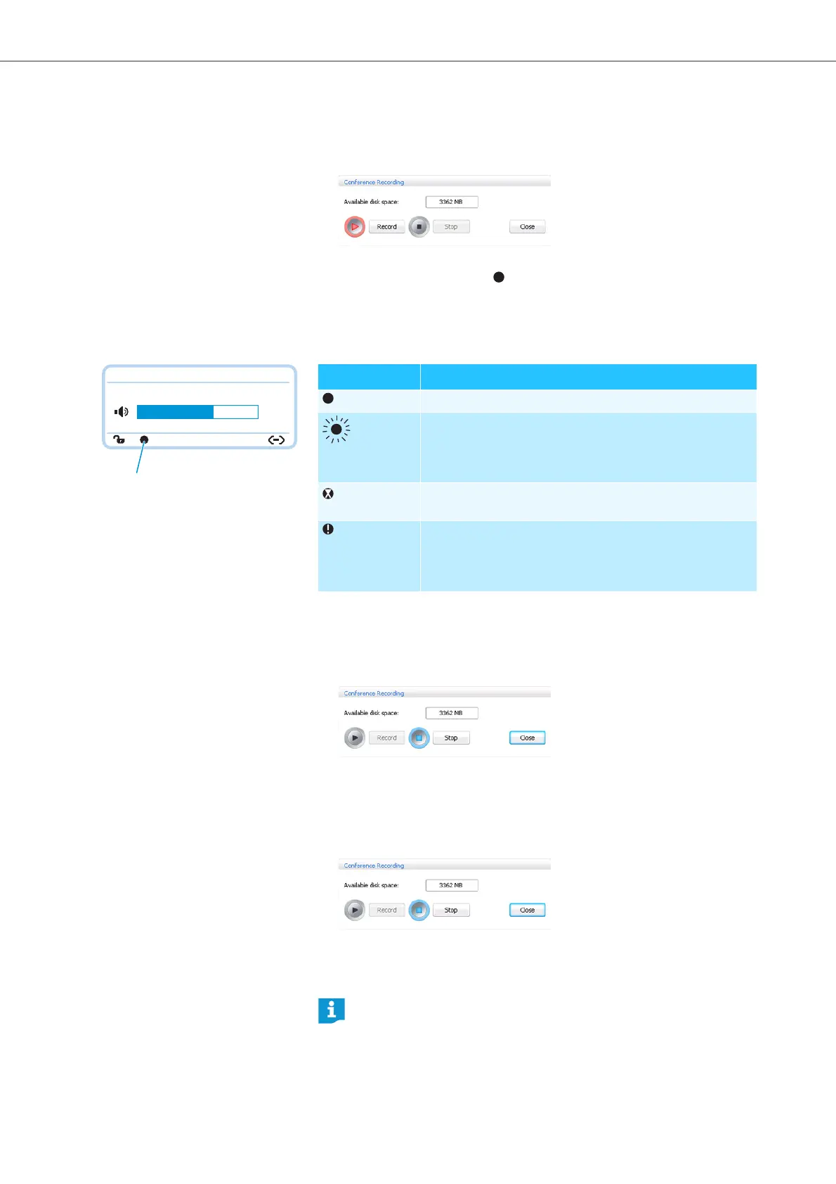 The “Conference Recording” window appears and the available memory space