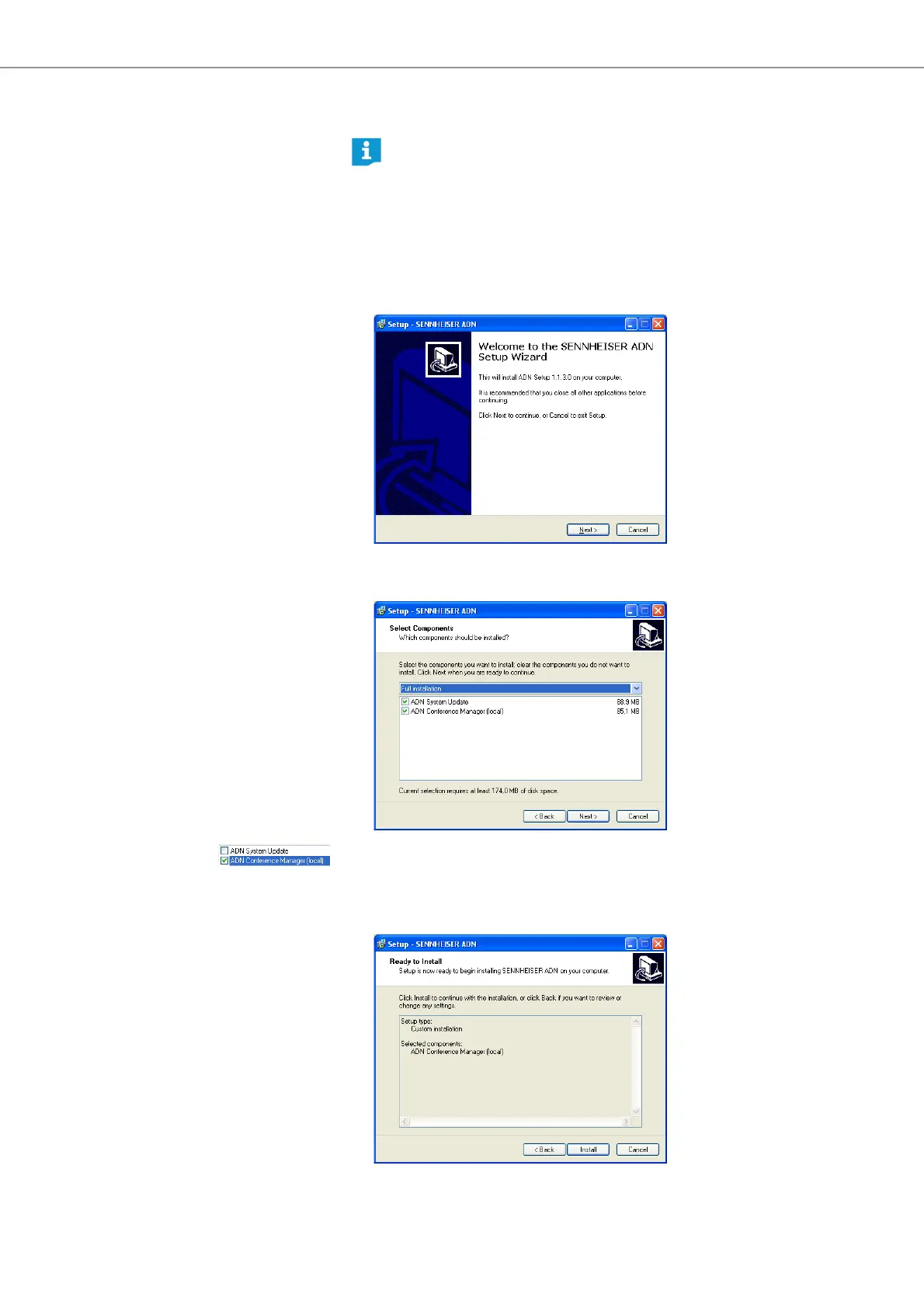 왘 Start the “ADNSetup.exe” file in the “Conference Manager” folder on the