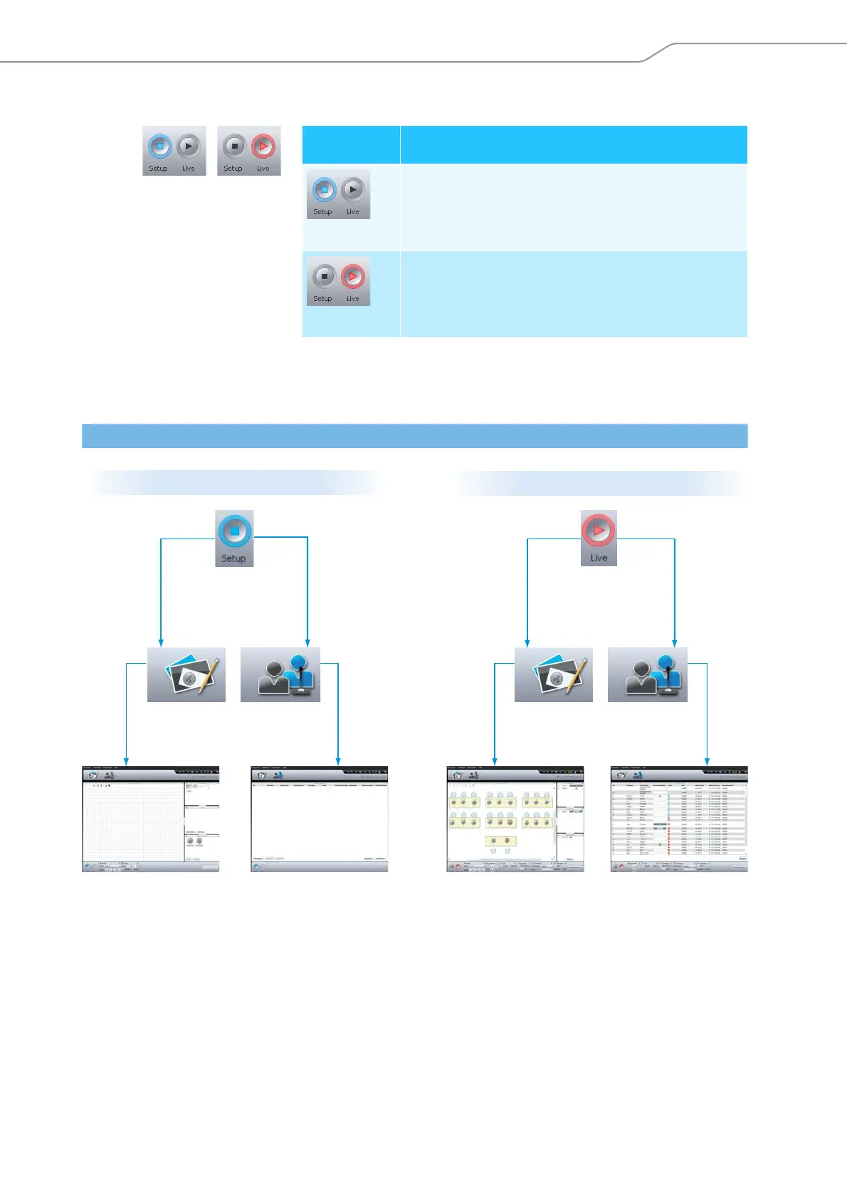 In “Setup” and “Live” operating mode, you can switch between the Room View