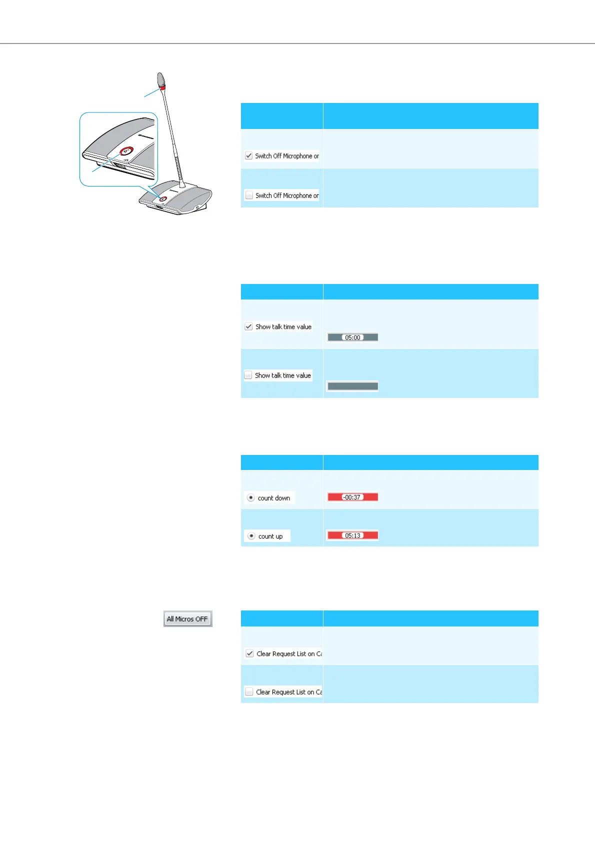 “count up” The individual speaking time is counted upwards.