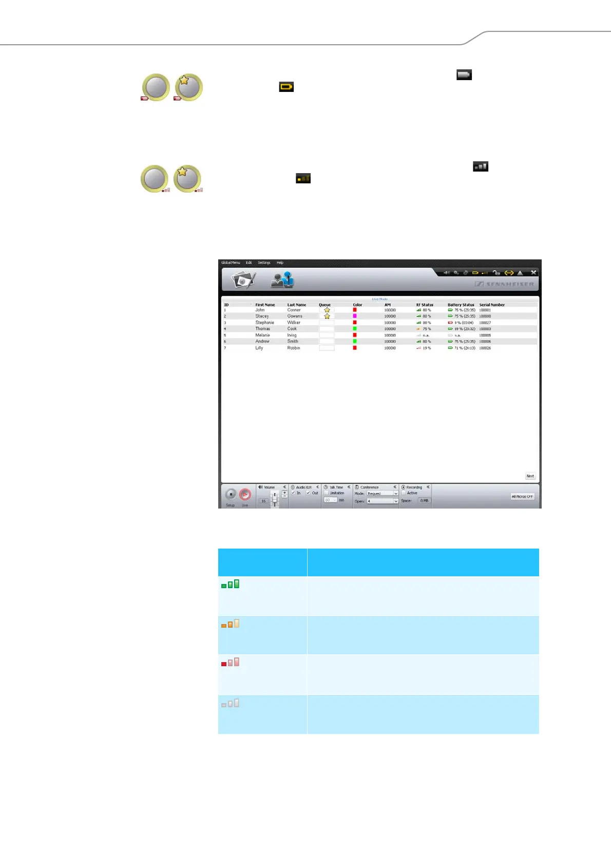 If the battery charge of a wireless conference unit is low, the icon on the tool-