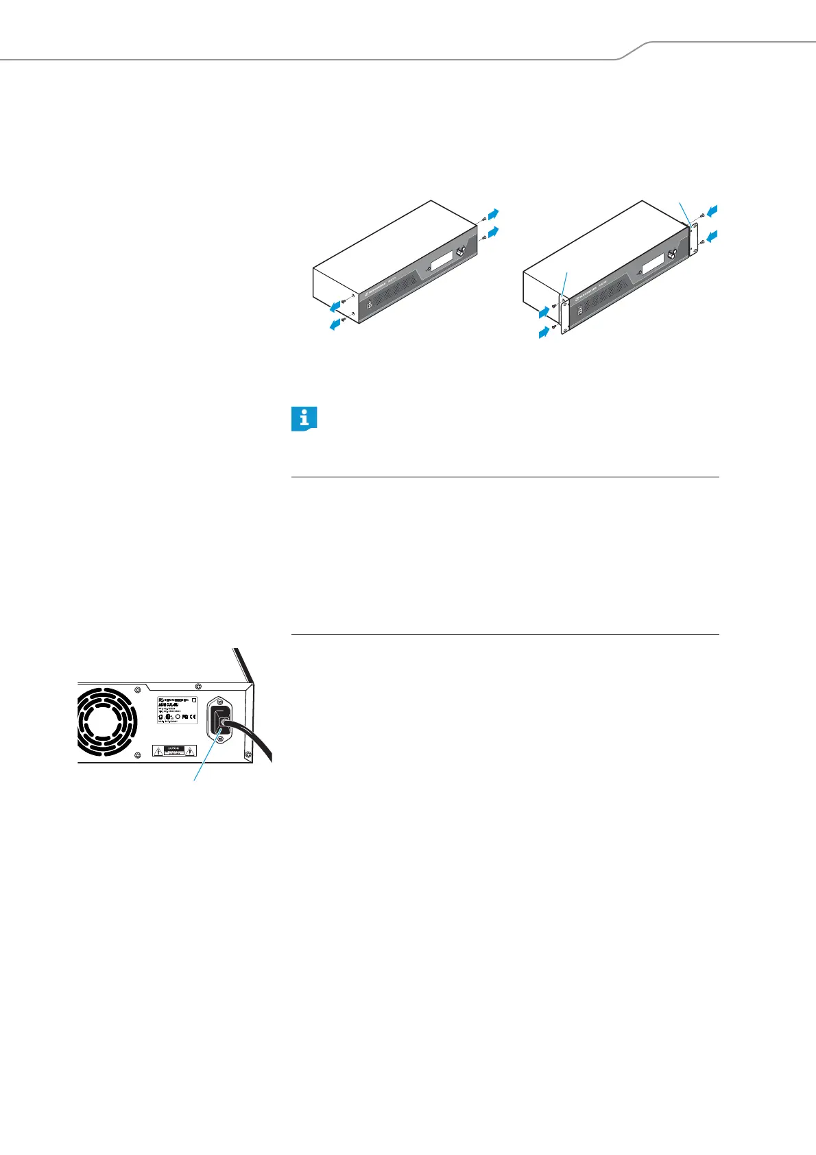 왘 Slide the central unit with the mounted rack mount “