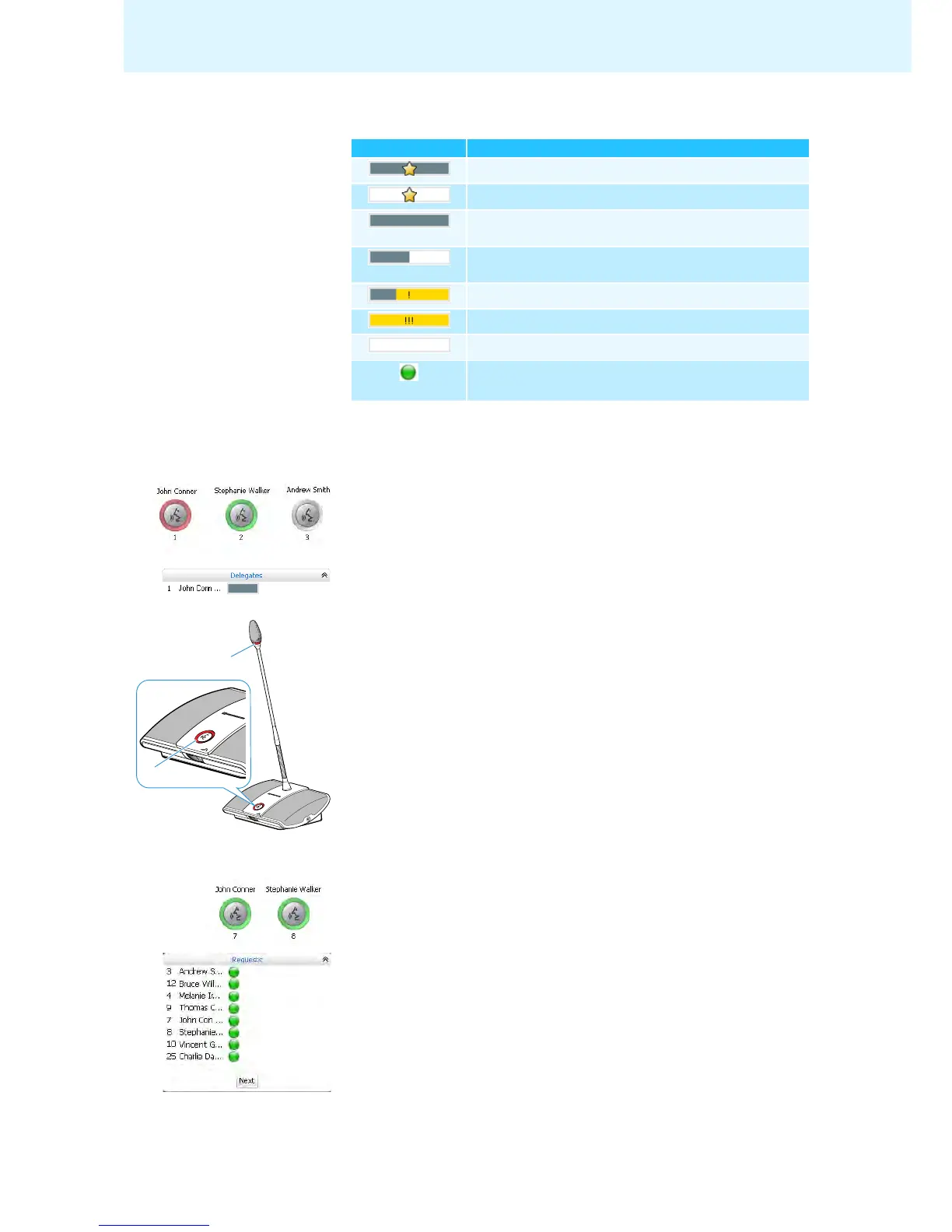 Overview of the bar graphs The conference unit icons display the current status of the conference units