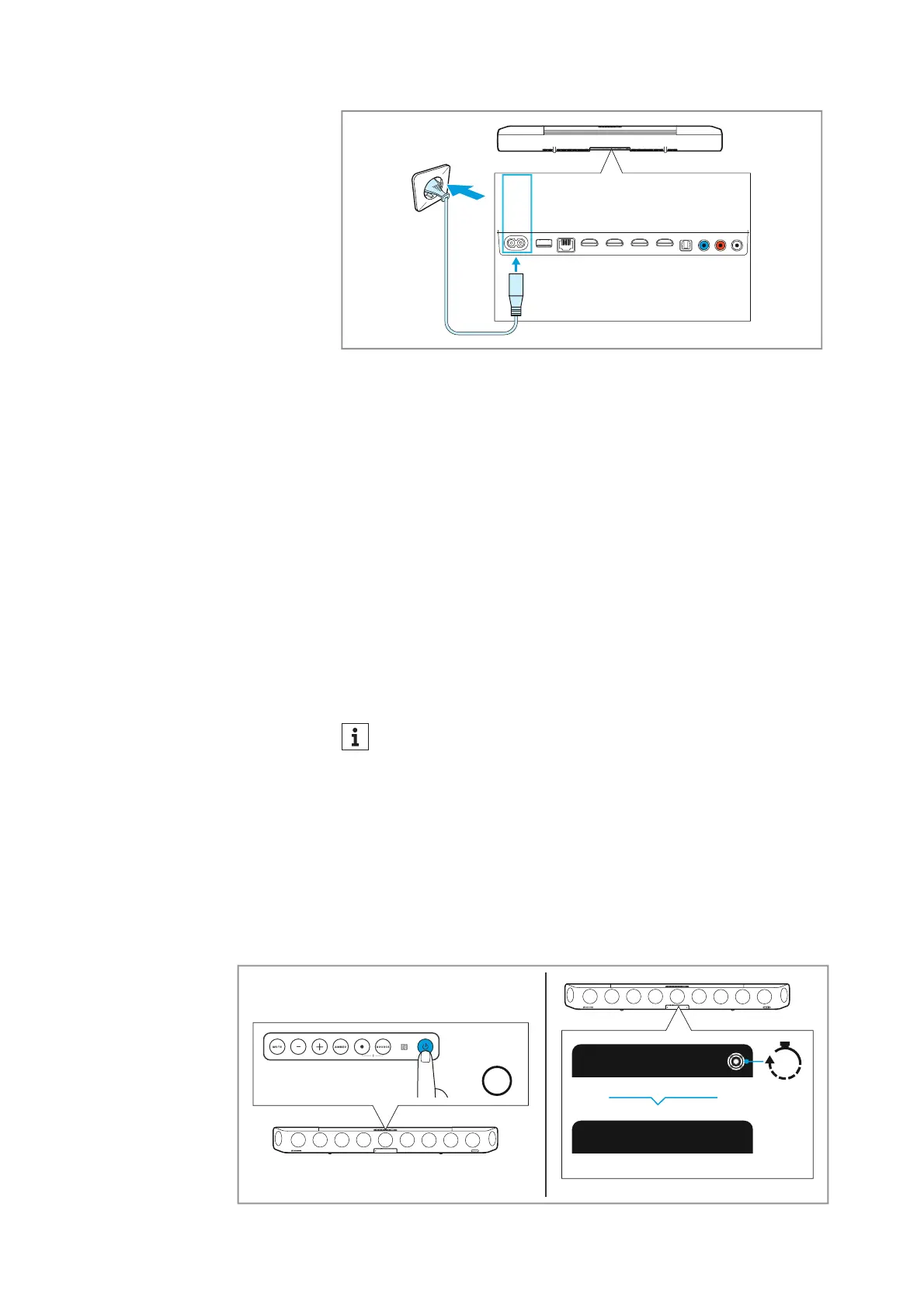 ▷ Press the on/off button on the top of the Soundbar or the on/off