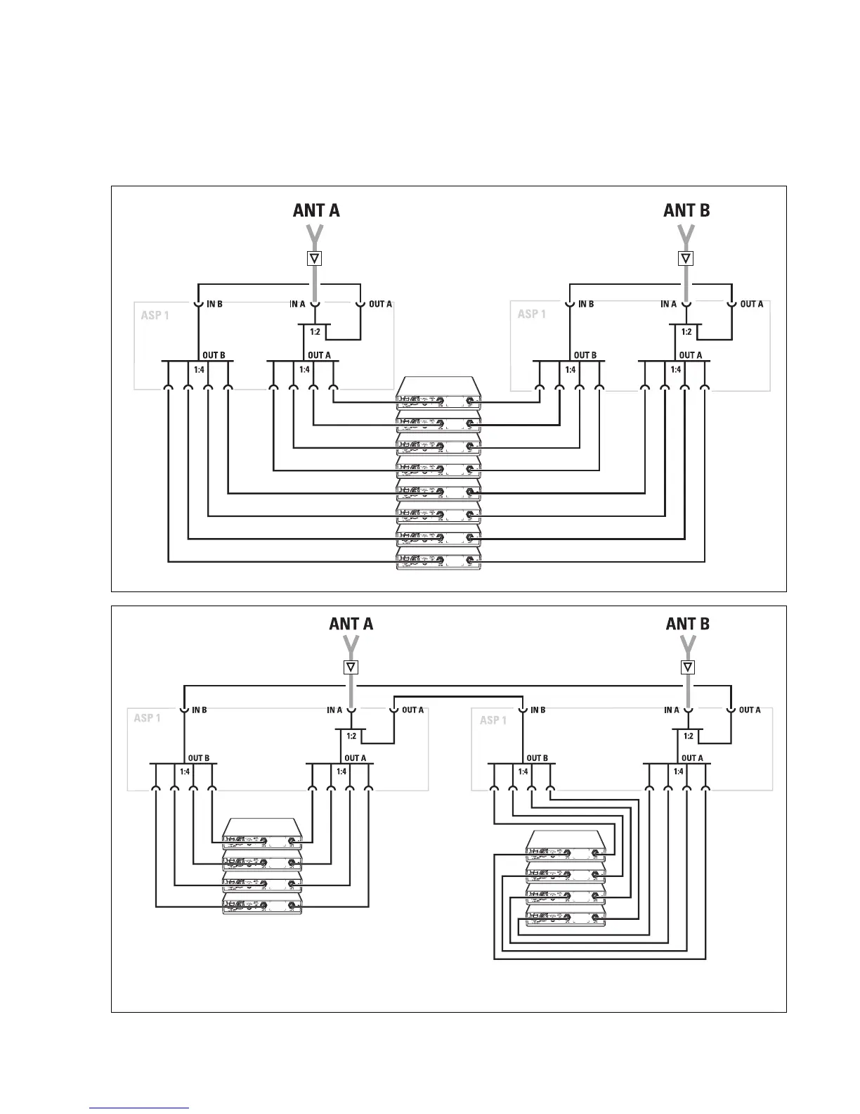 Two ASP 1 antenna splitters can be used to make an 8-way