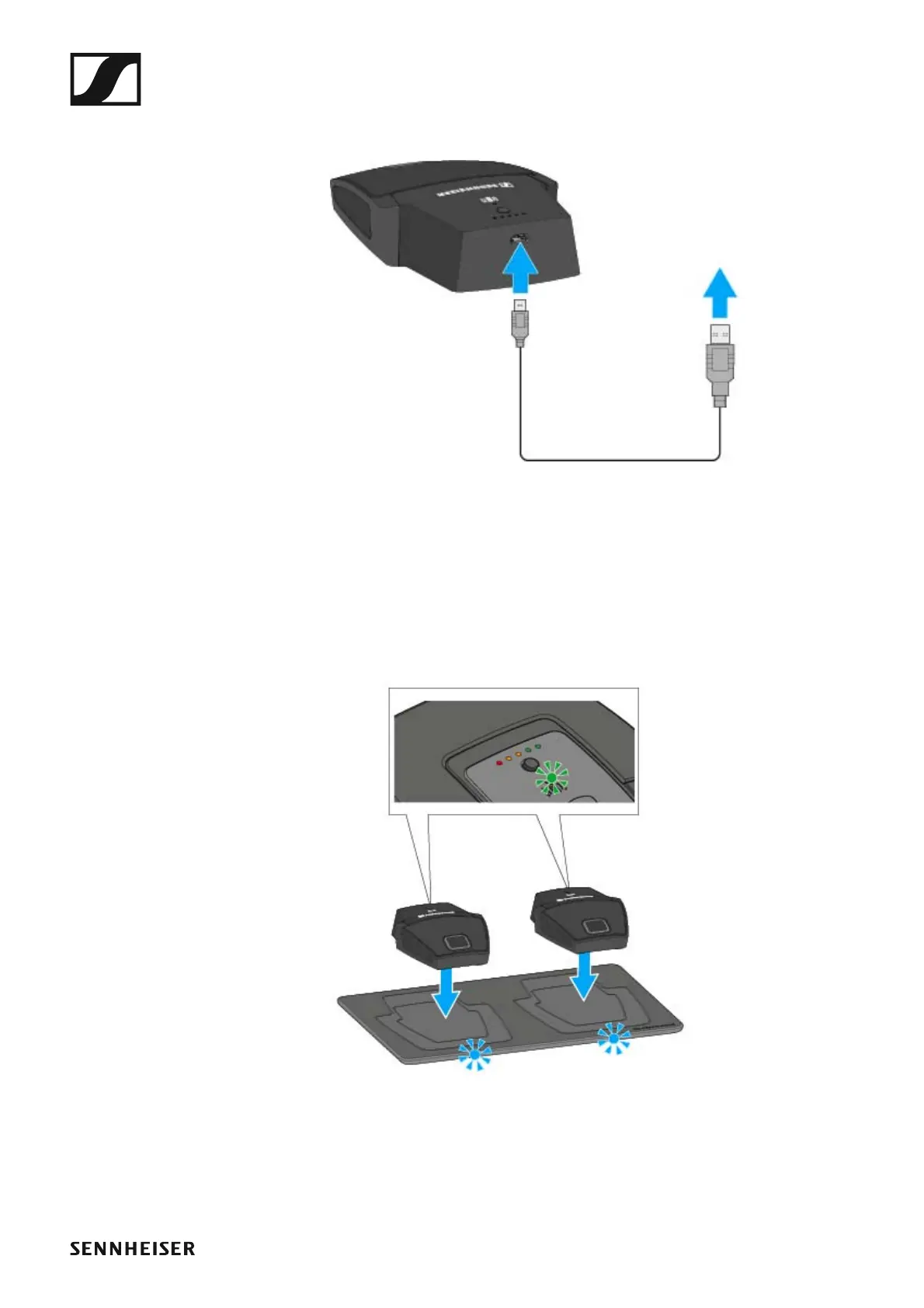 The LEDs on the CHG 2W charging base flash blue during charging.