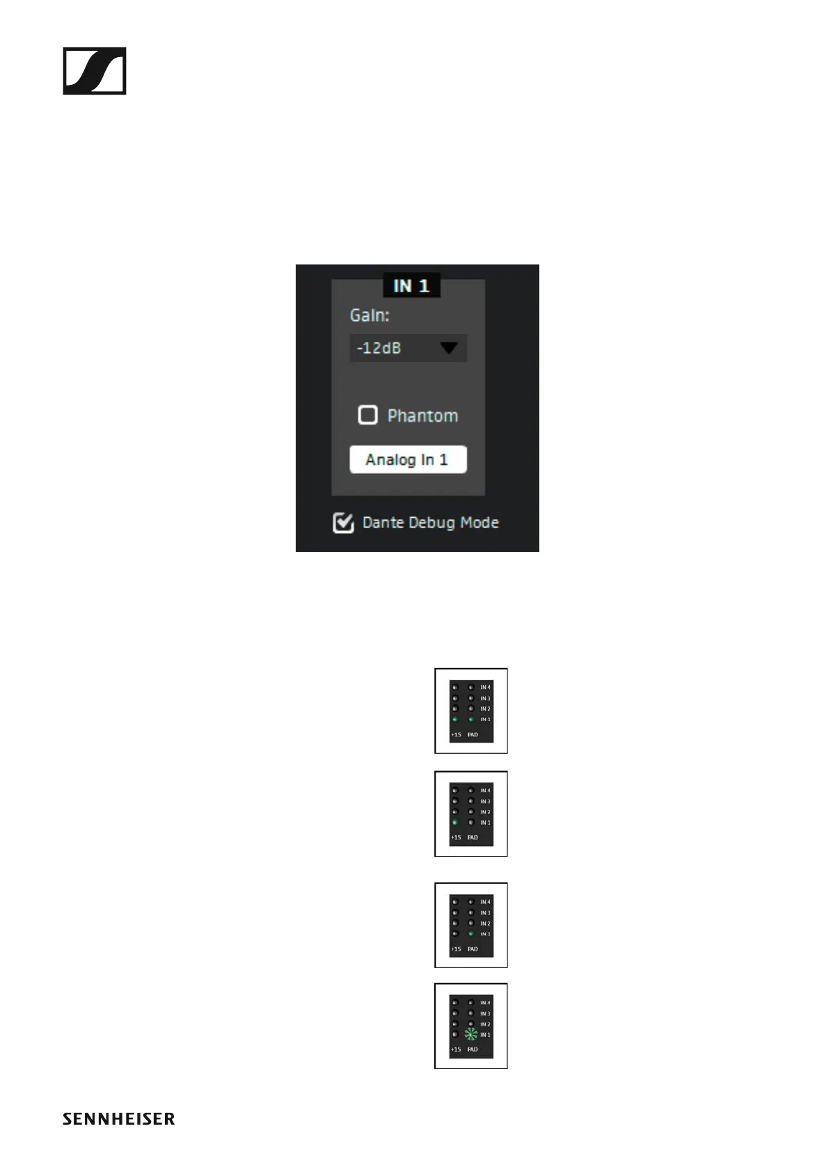In Dante Debug Mode, the LEDs at the front of the SL DI 4 XLR indicate the