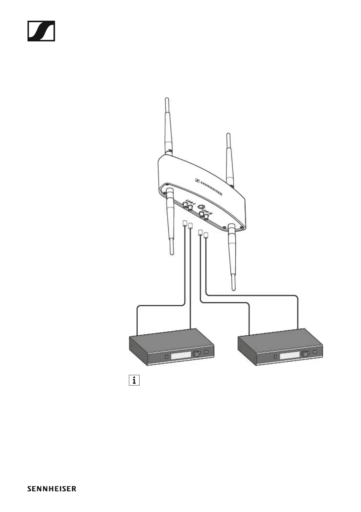 ▷ Connect the two antenna outputs ANT I and ANT II of the first receiver