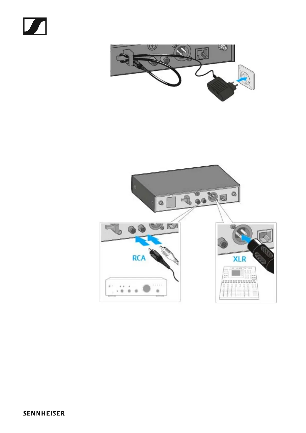 Connecting an amplifier or mixing console to the receiver