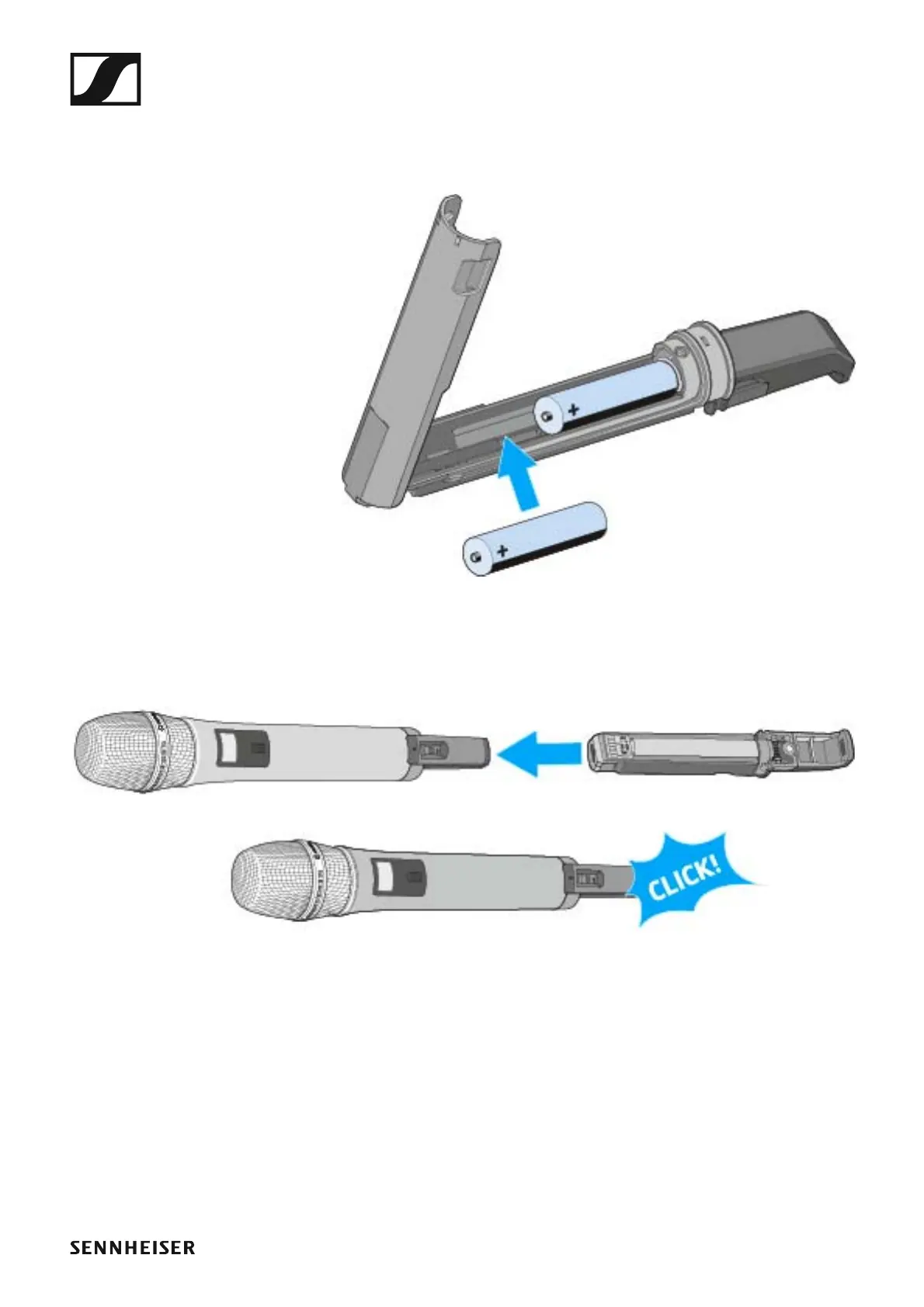 ▷ Slide the accupack or the battery compartment onto the handheld