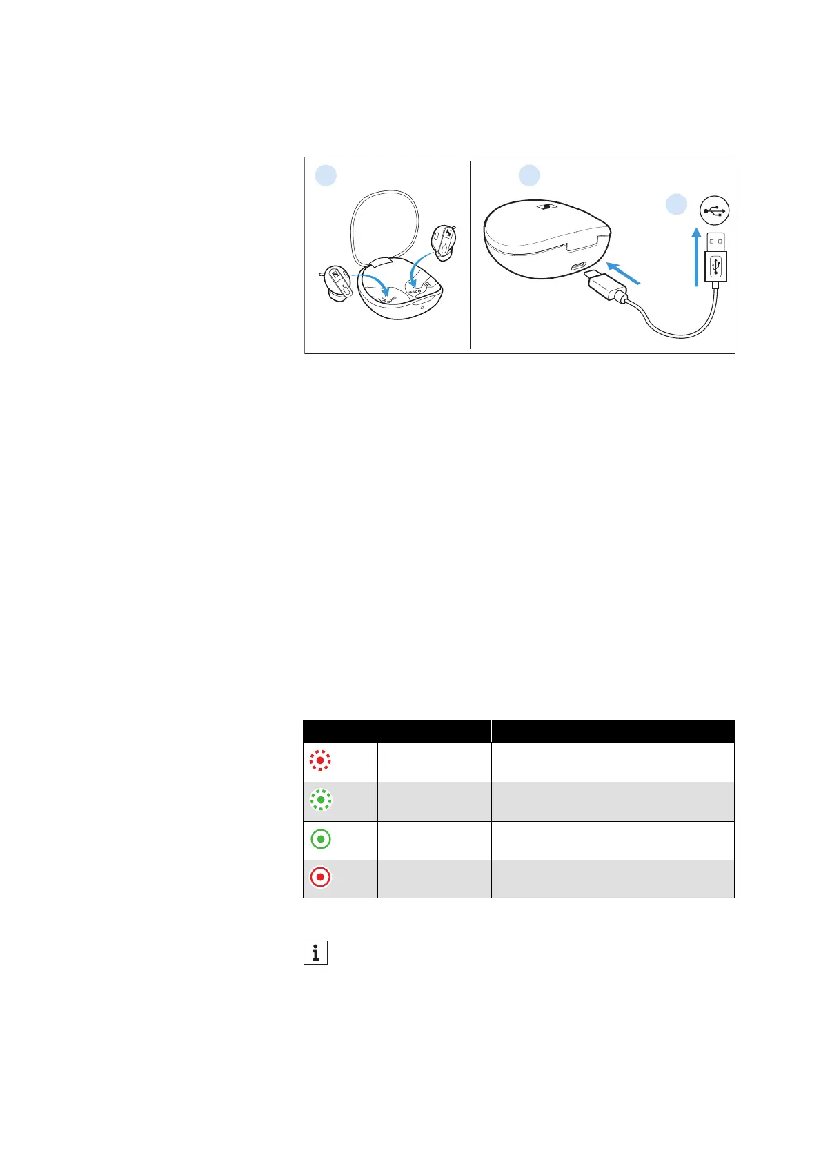 • Charge the rechargeable batteries of the earbuds and the
