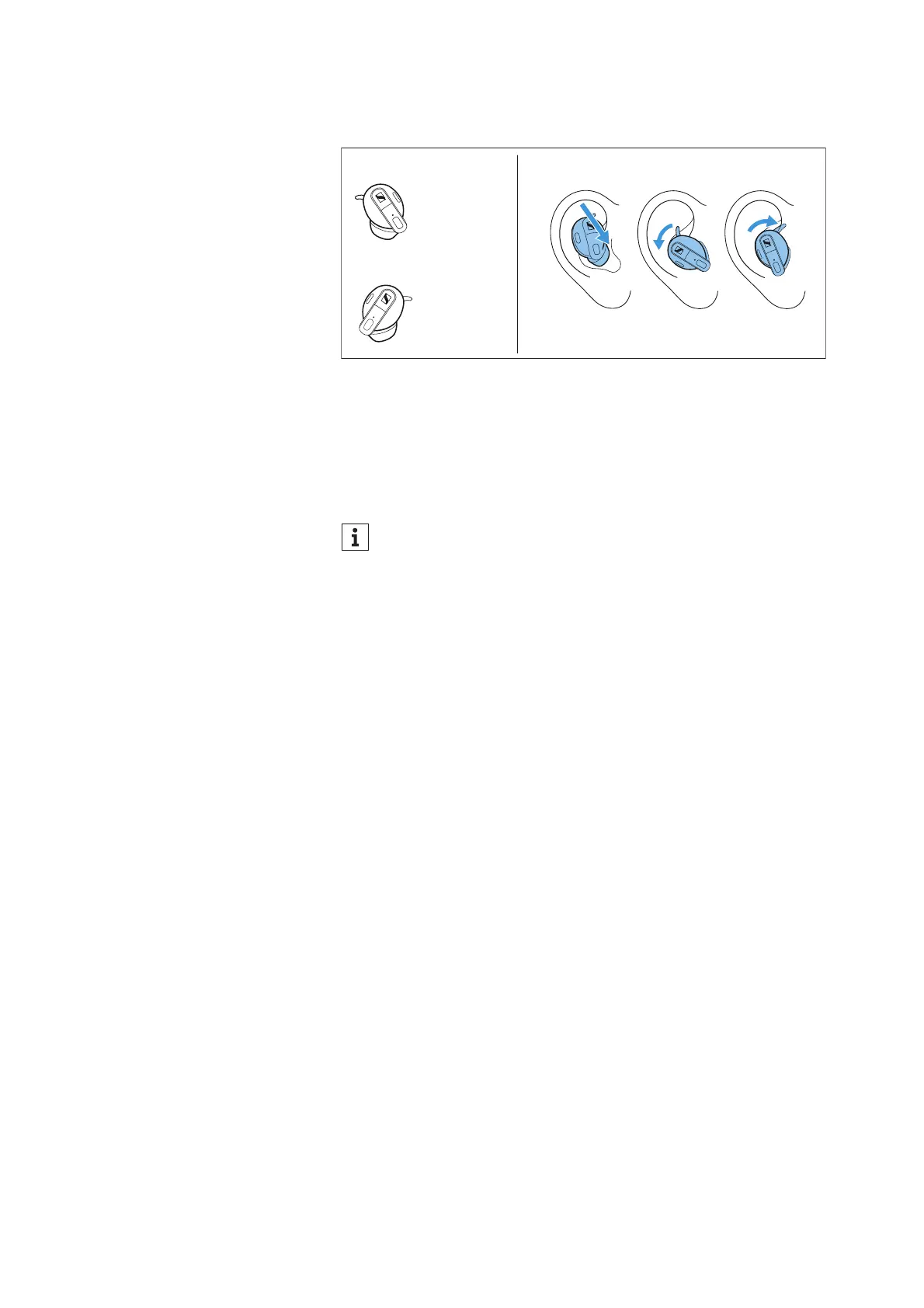 ▷ Insert the earbuds at a slight angle into the ears and twist them