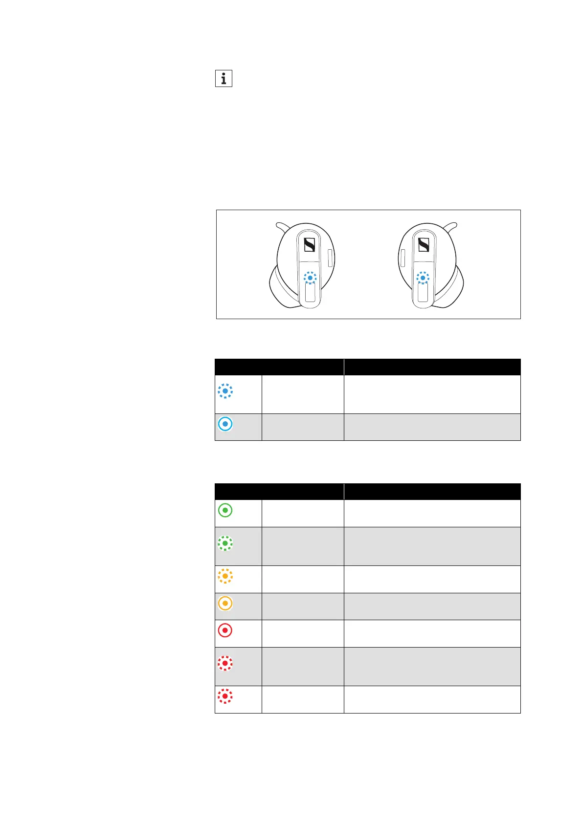 The LEDs of the earbuds indicate the status of the Bluetooth connec-