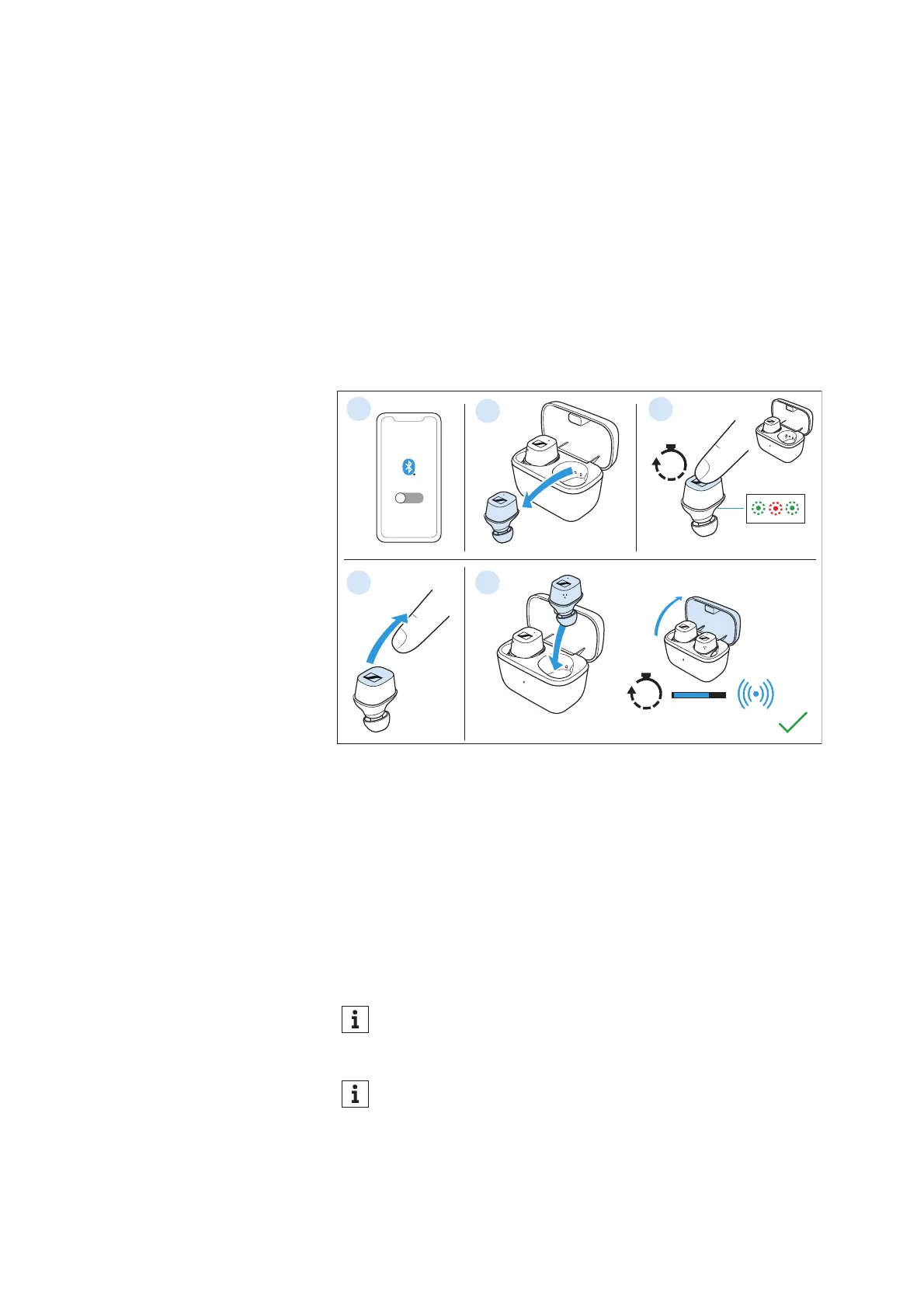 The right and the left earbud are paired with each other upon deliv-