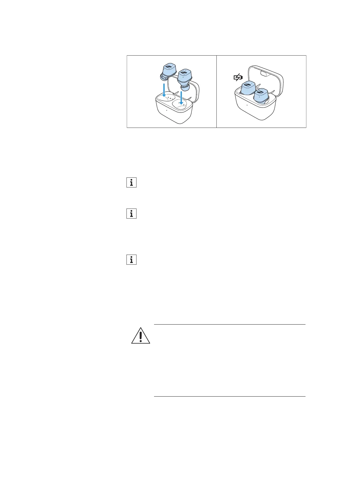▷ Insert the earbuds into the charging case to switch them off.