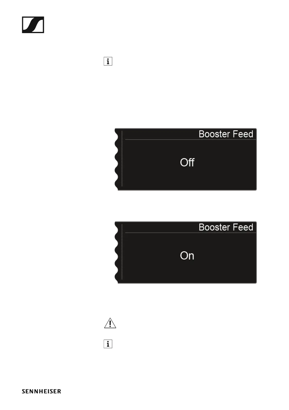 ▷ Turn the jog dial in the System menu item until the Booster Feed menu