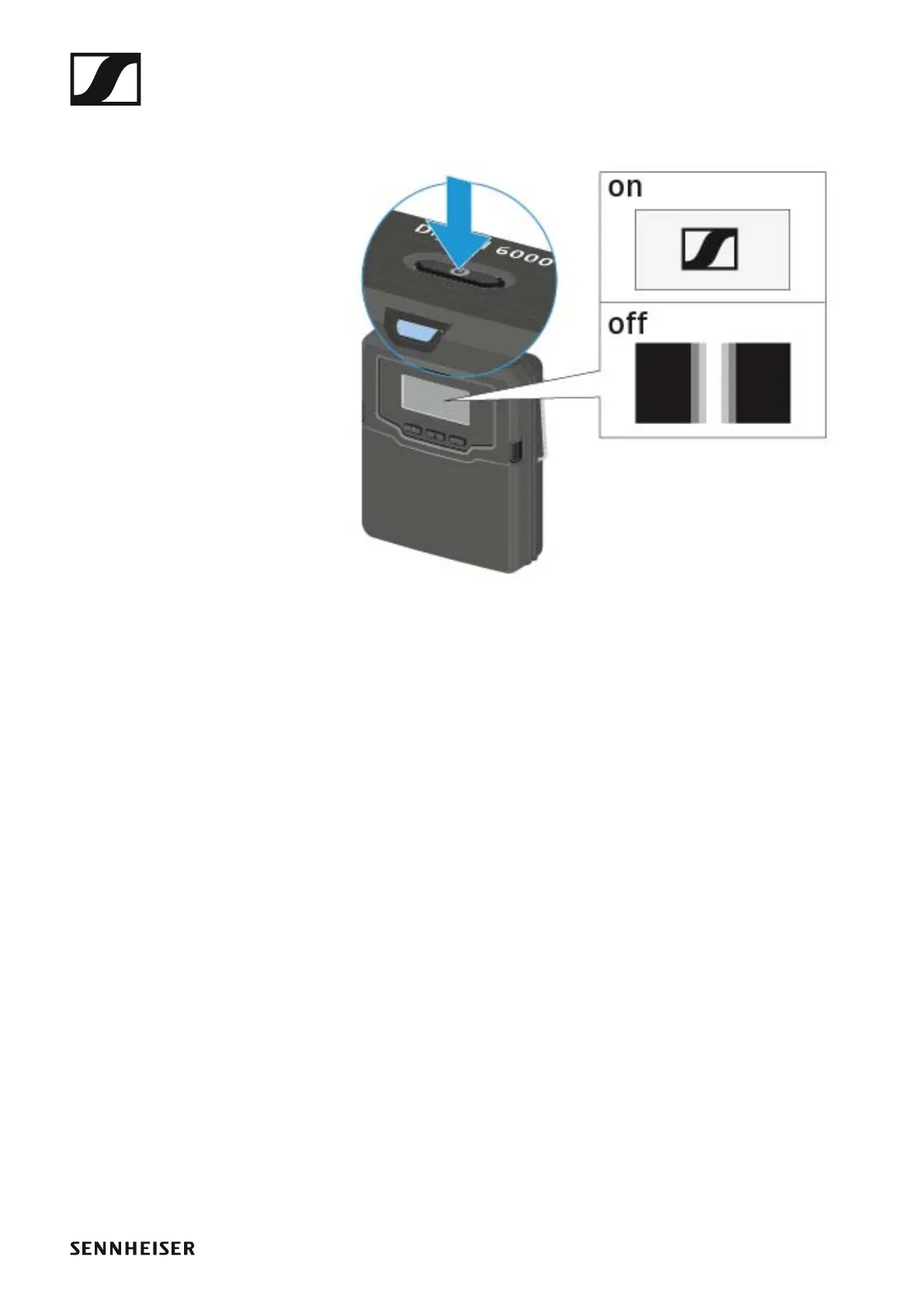 Sennheiser Digital 6000 - Switching the SK 6000 on and off
