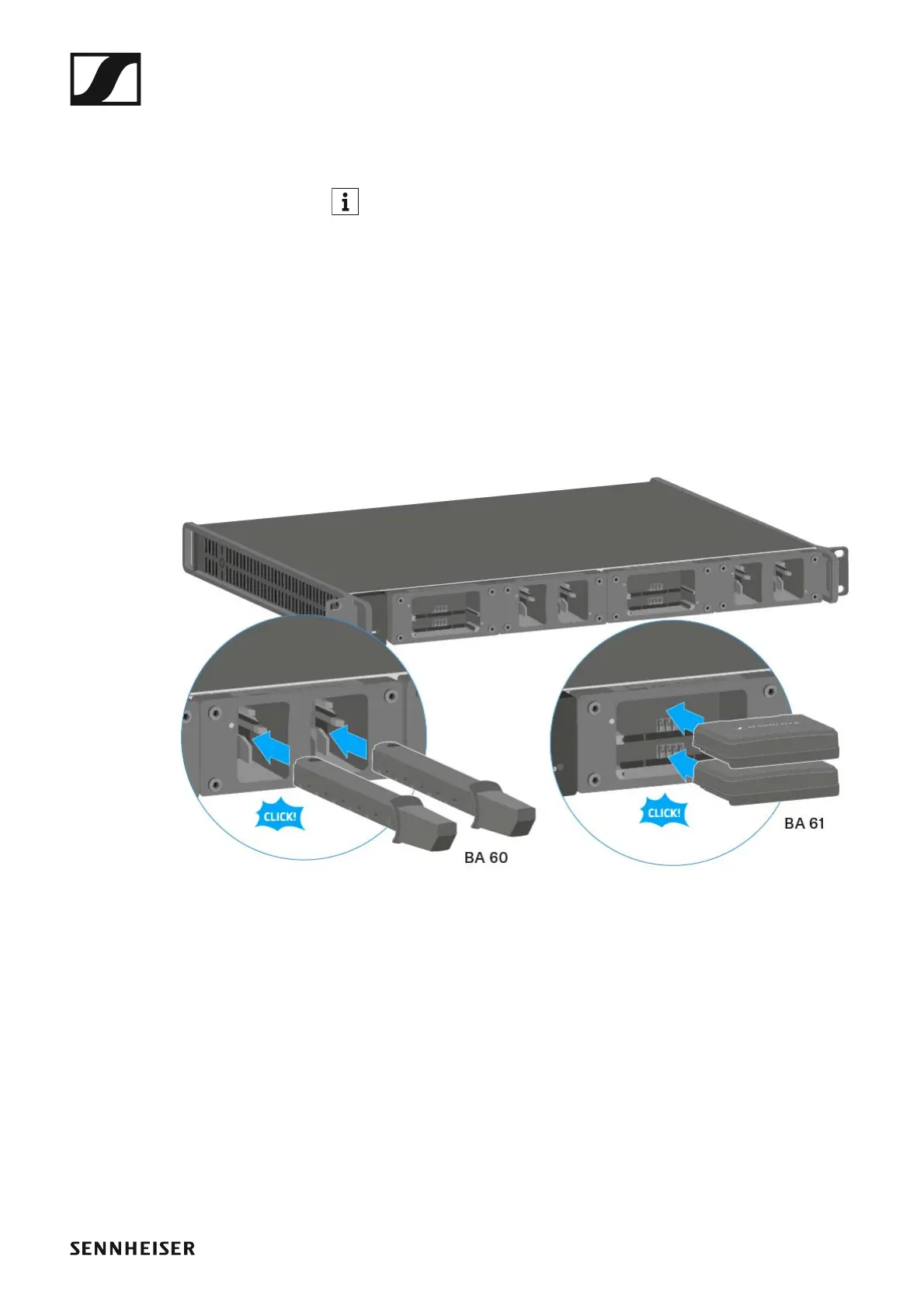 ▷ Insert the BA 60 or BA 61 rechargeable battery into the LM 6060 or