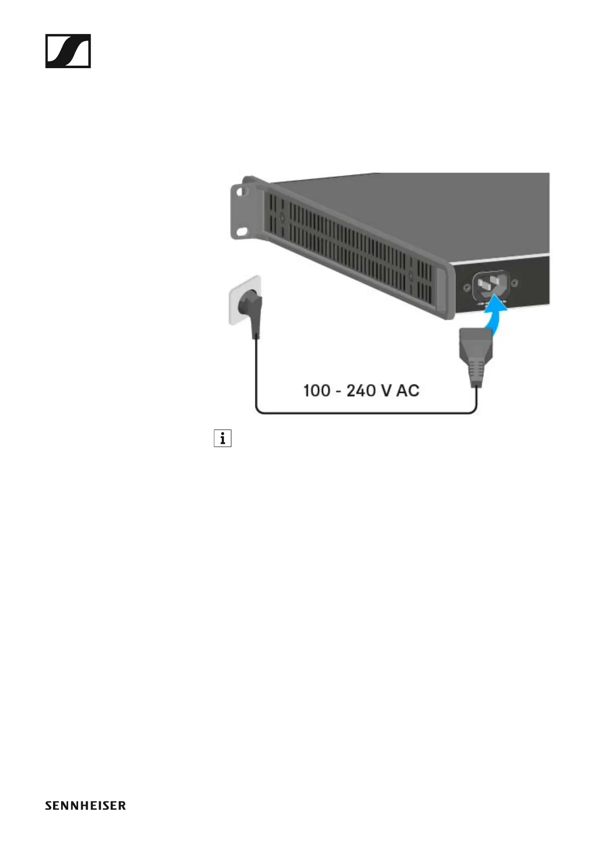 ▷ Connect the mains cable IEC connector to the power socket on the rear