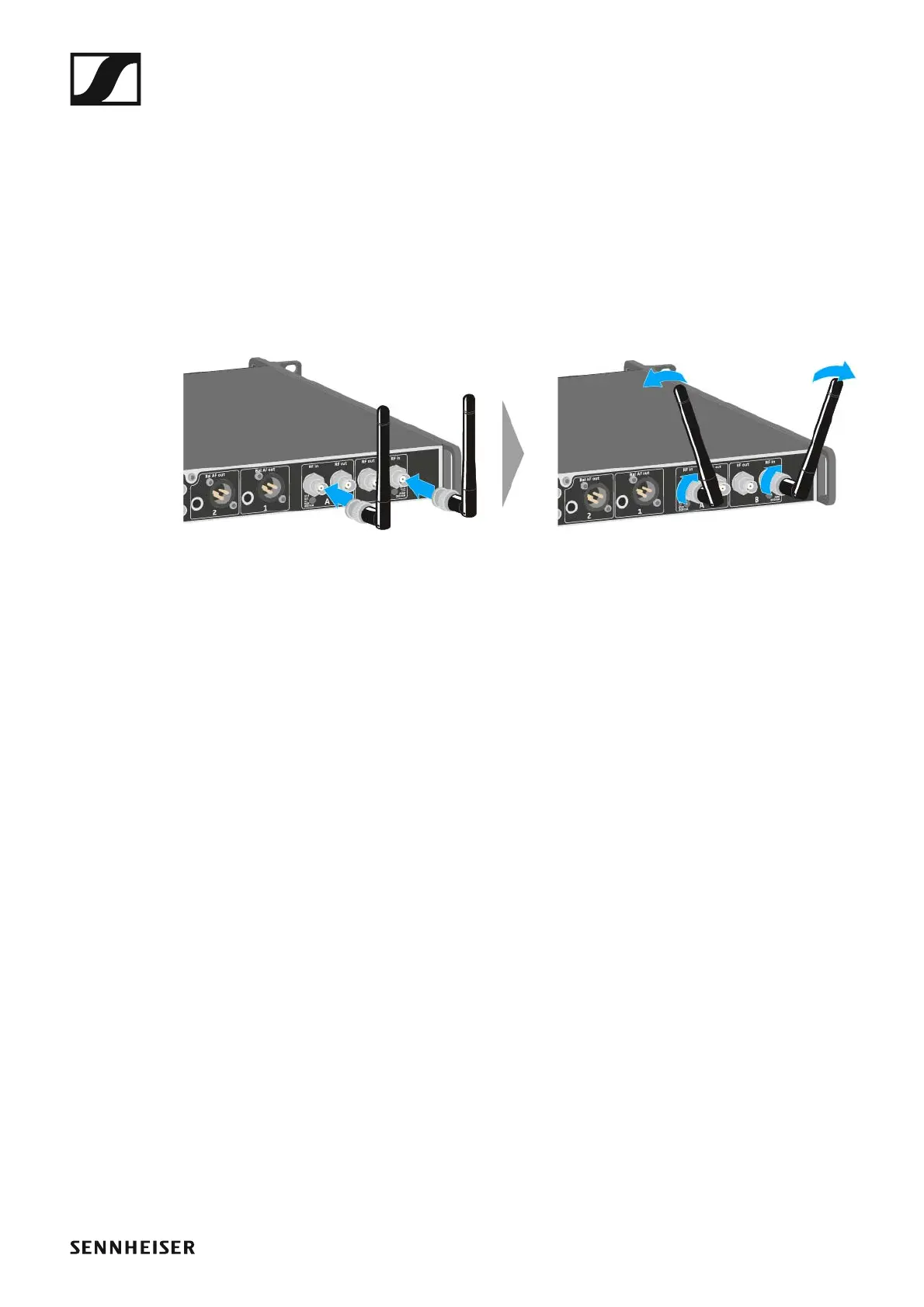 ▷ Connect the second rod antenna to the RF in socket for Antenna B on