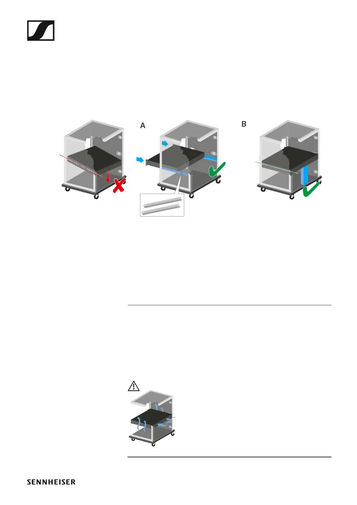 ▷ Ensure that there is sufficient ventilation in the rack, particularly if sev-