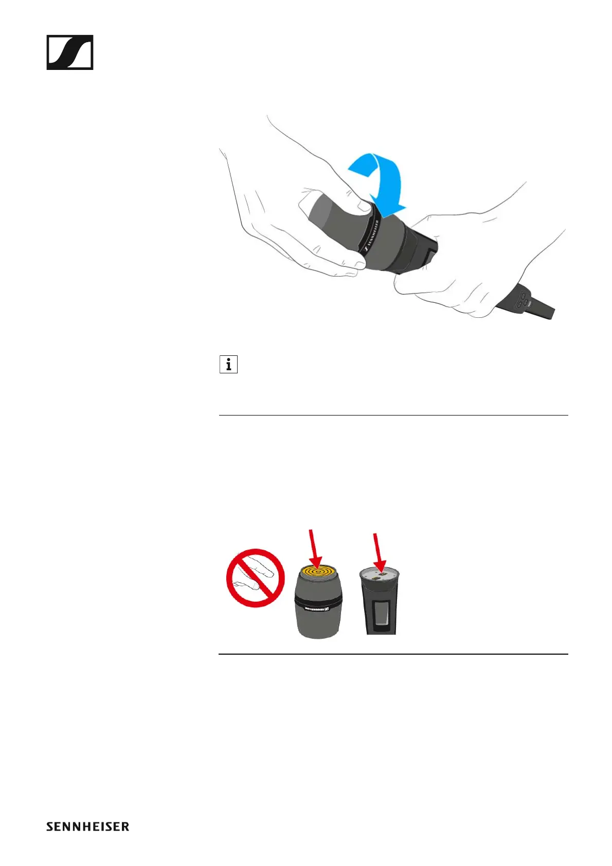 ▷ Do not touch the handheld transmitter contacts or the microphone
