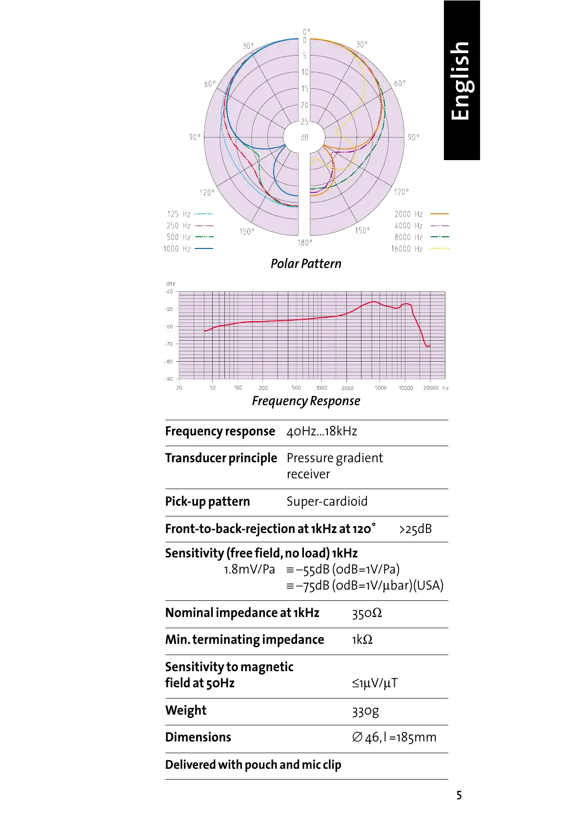 1.8mV/Pa ≡ −55dB (0dB=1V/Pa)