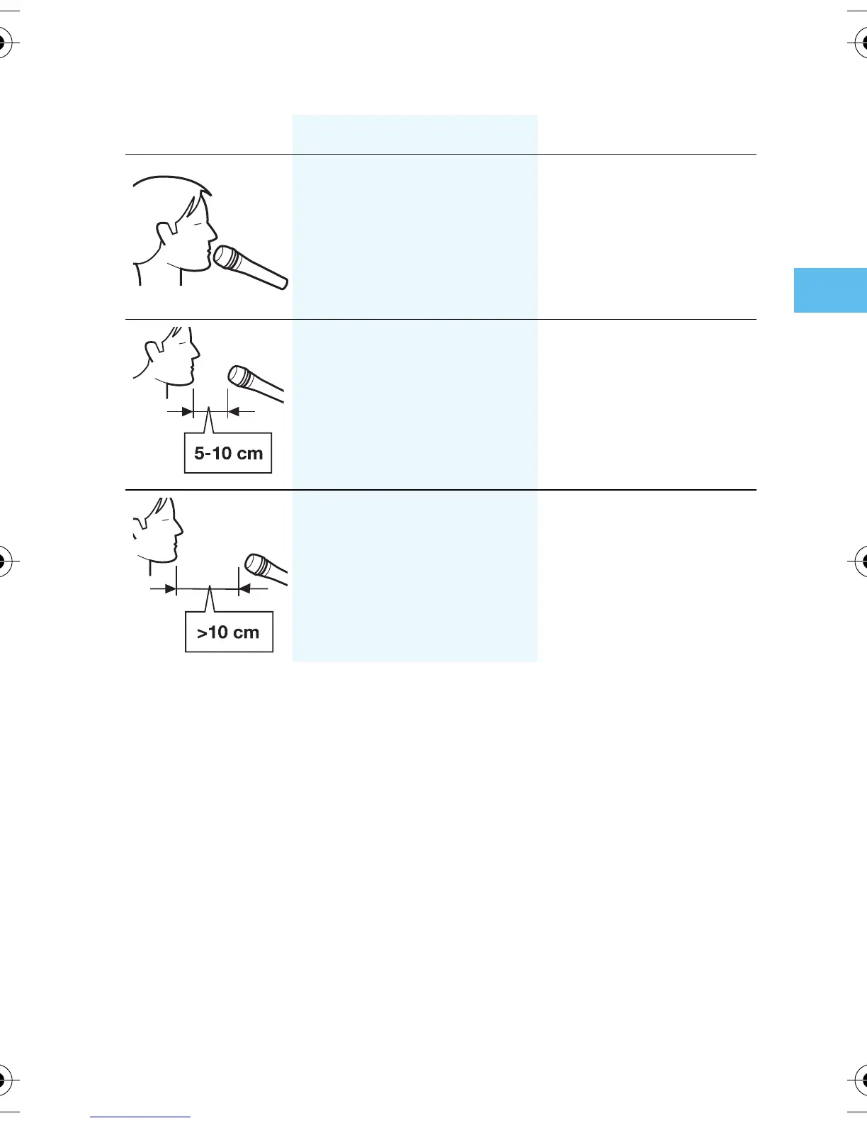 If sibilance or „popping“ occurs, position the microphone